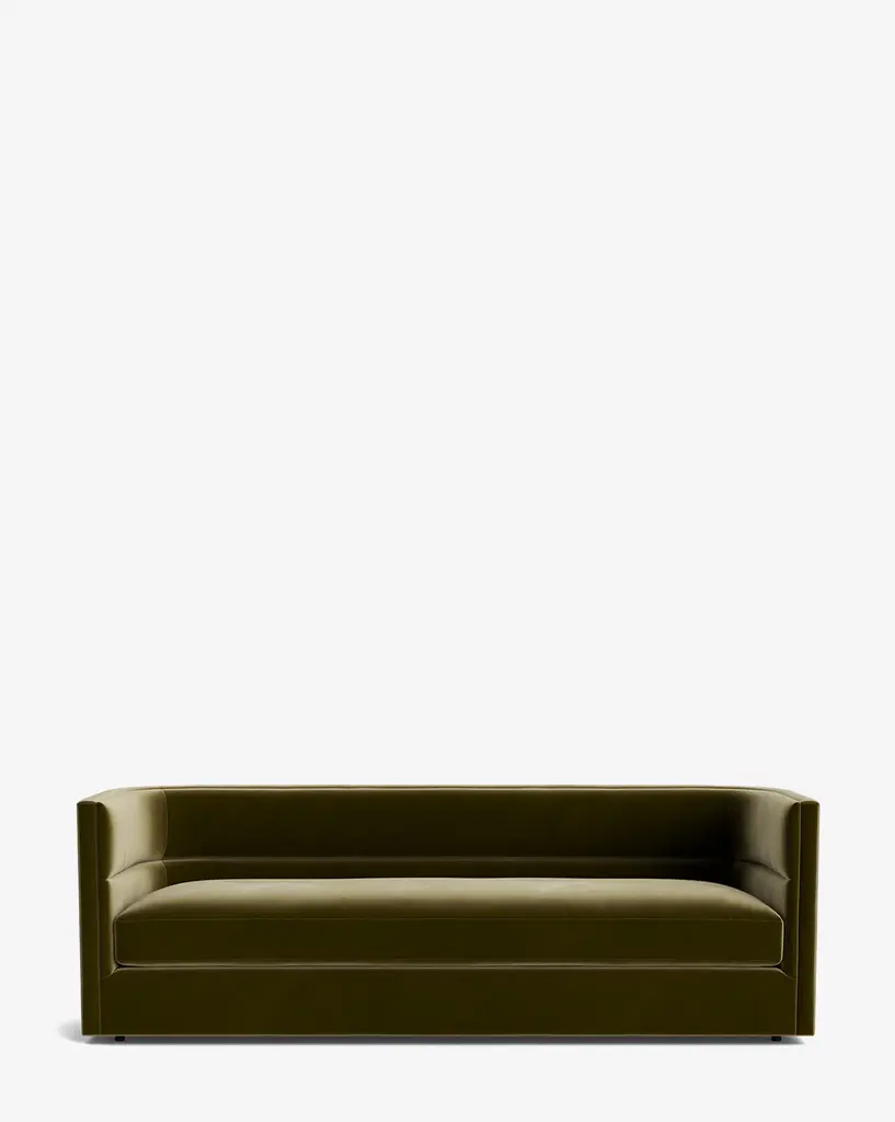 Made to order in a curated selection of fabrics, the Byron Sofa 96" features a curved back and sloped arm with a blind seam. Complete with deep, tight-pulled seats and recessed wood legs, the Byron Sofa 96" has a dressy but fun silhouette that is unique to our collection.