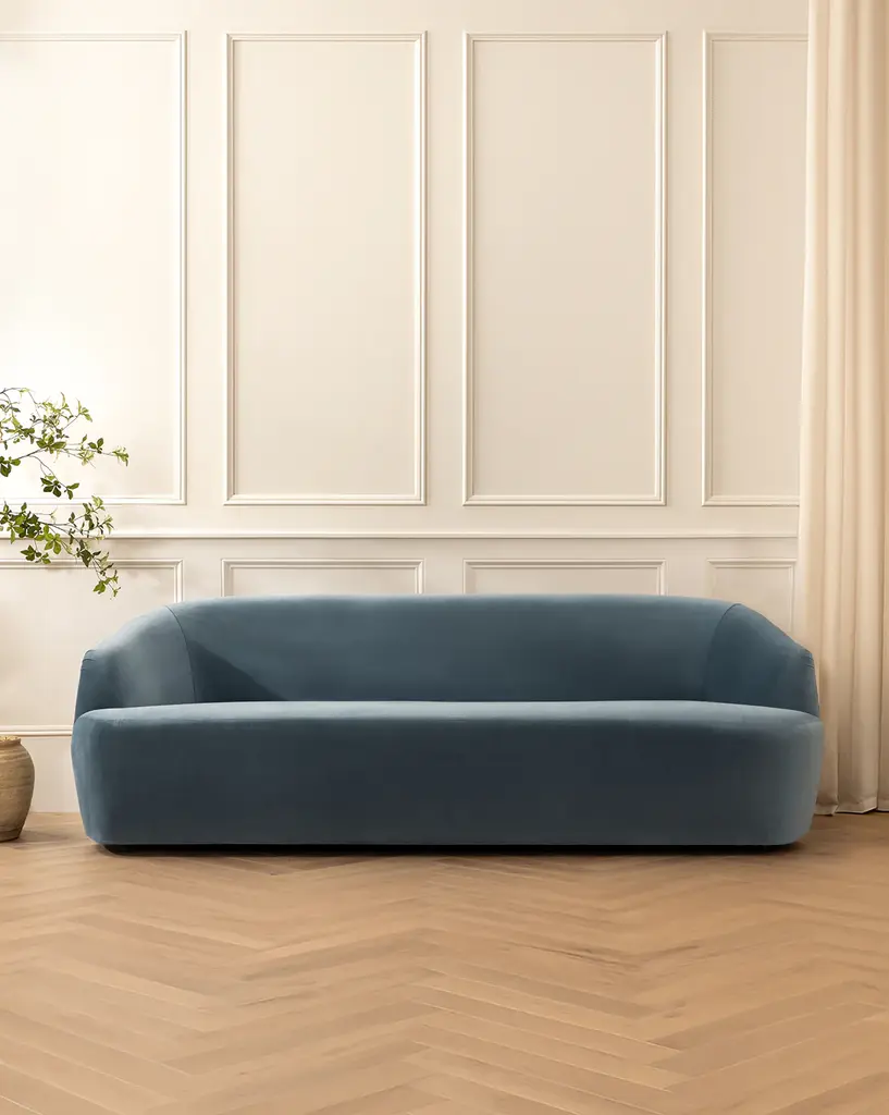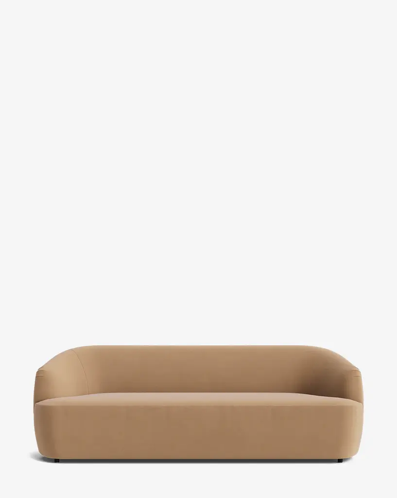 Made to order in a curated selection of fabrics, the Byron Sofa 96" features a curved back and sloped arm with a blind seam. Complete with deep, tight-pulled seats and recessed wood legs, the Byron Sofa 96" has a dressy but fun silhouette that is unique to our collection.