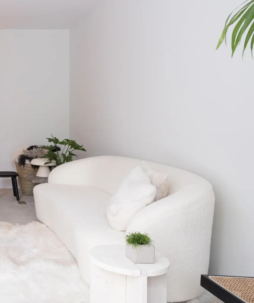 The C Sofa by am designs is a sculptural, contemporary piece defined by its bold curves and generous proportions. Handmade in Belgium, this fixed-upholstery sofa offers a refined, architectural presence that anchors any room. Available in a range of sizes and fabric options, the C Sofa can be tailored to suit a variety of interiors—from minimalist lofts to more layered, curated spaces. The fabric as shown here is Bouclé Oyster (71% Linen). With its monolithic silhouette and exceptional craftsmanship, the C Sofa is both functional and statement-making. A timeless piece that reflects am designs’ commitment to comfort, form, and refined materiality. Made to order.