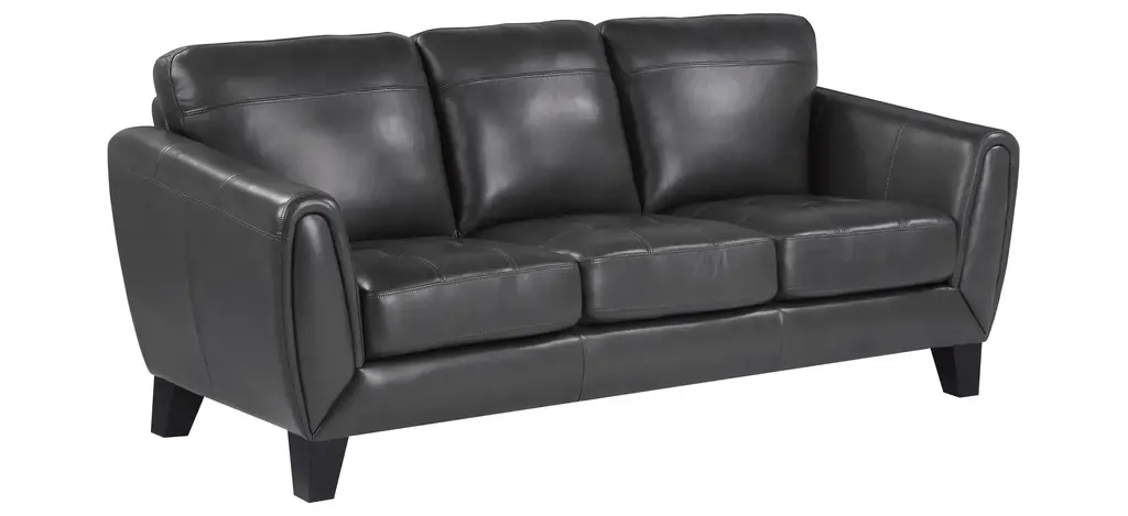 The subtle retro look of the Cadence Collection will pair with modern aesthetic of your home's decor, creating a classically cool look that is sure to turn heads. The streamlined profile of the sofa is covered in an dark gray hued top grain leather. Defining detail comes in the form of the arm's contour stitching and the cushioned wrap of the sofa's arms.