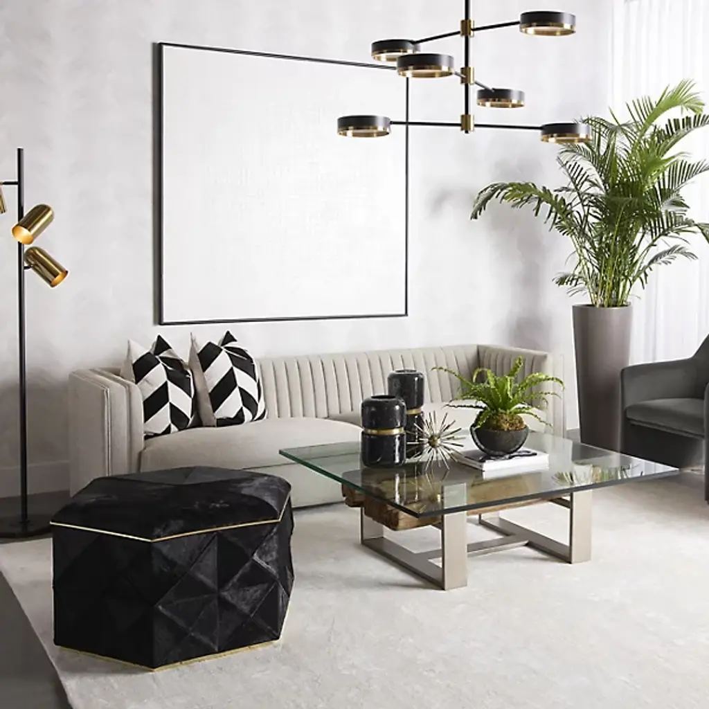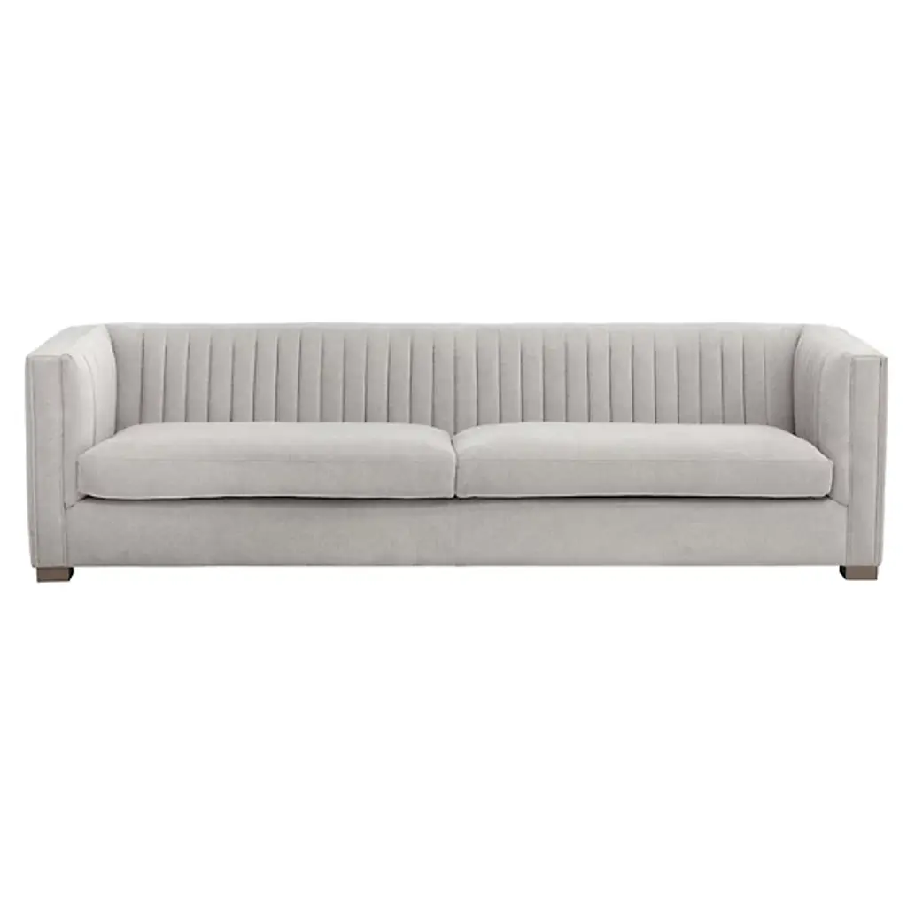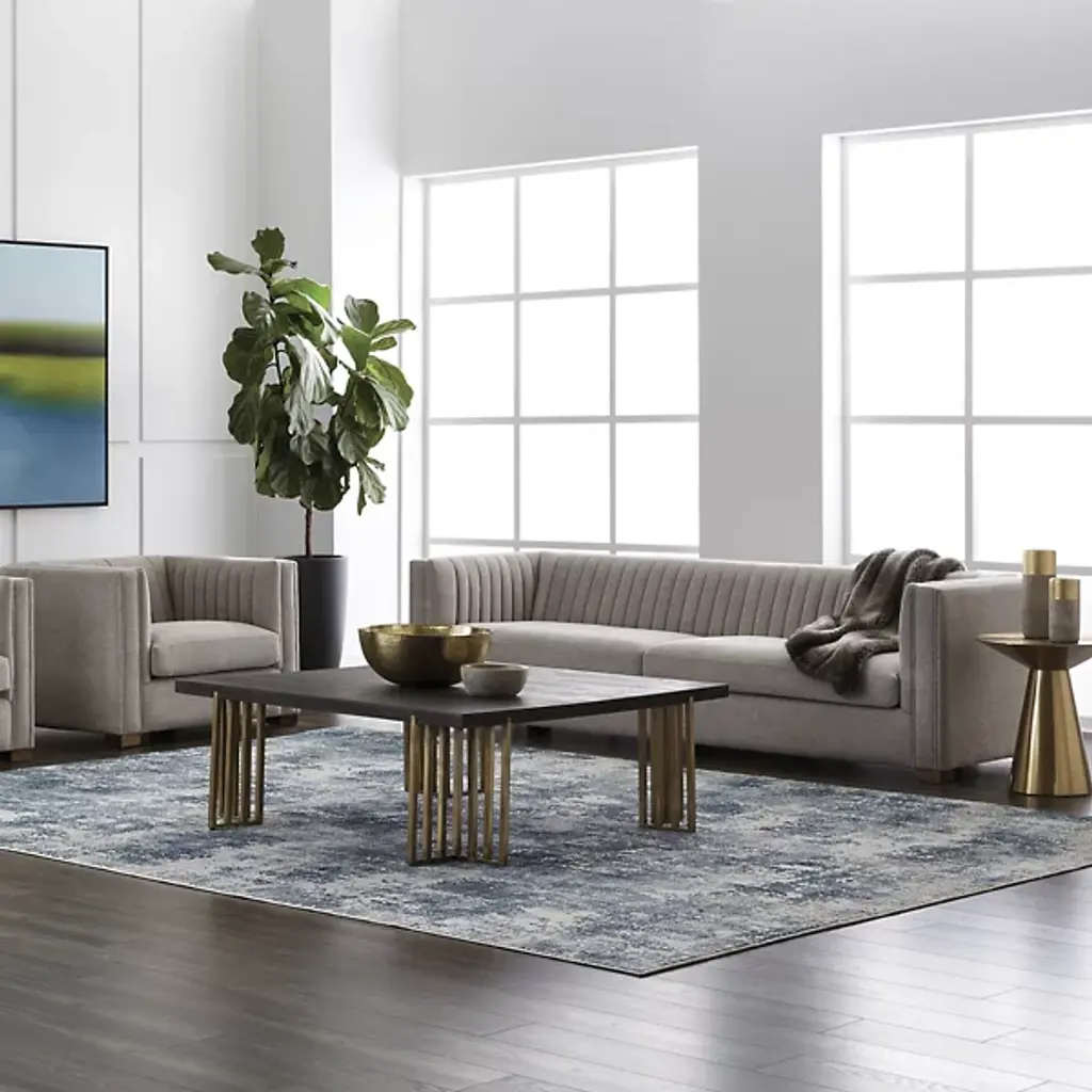 The Caitlin Sofa from Sunpan is designed to make a bold statement with its striking channel tufting on the seatback. Upholstered in our luxurious Hemingway silver fabric, this sofa exudes elegance and comfort. The addition of antique brass feet provides a sophisticated contrast, enhancing the overall aesthetic of the piece. Perfectly suited for both residential and commercial environments, this sofa elevates your decor and offers a stylish and inviting seating solution, making it an eye-catching centerpiece in any room.