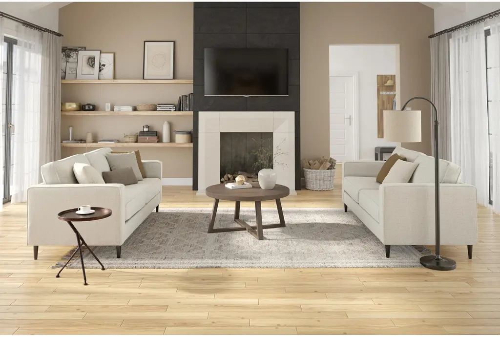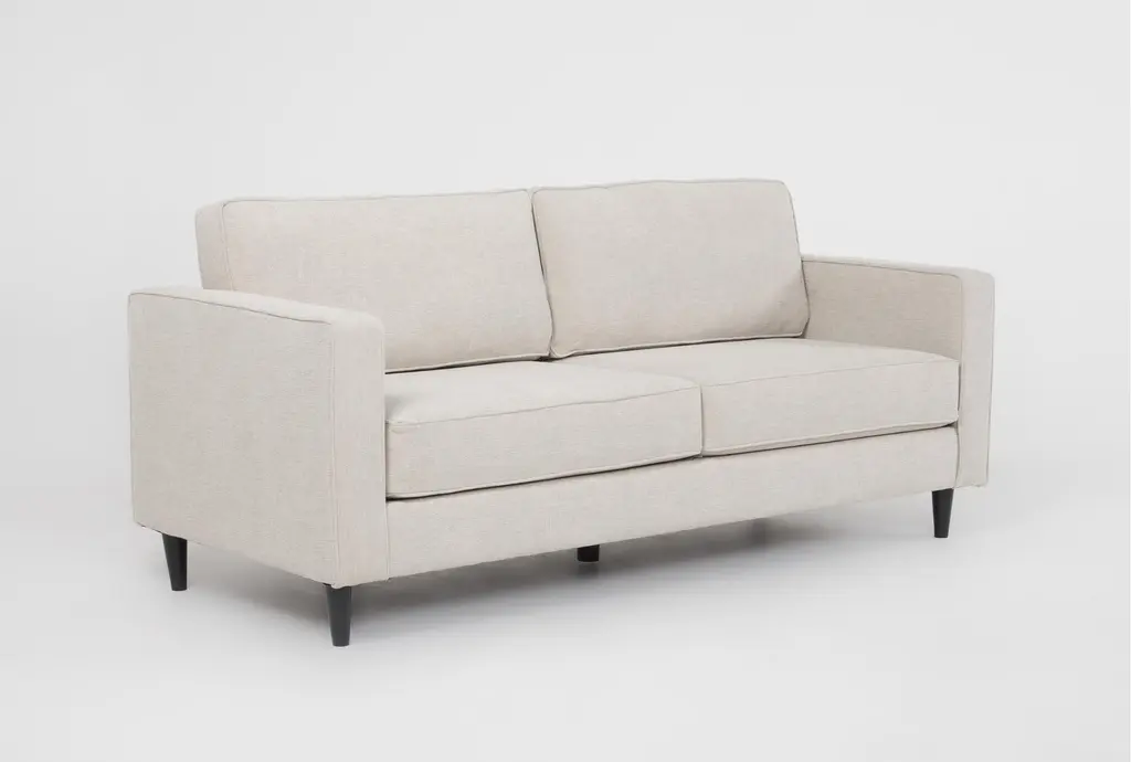 Introducing the Calais III Linen 78" Modern Sofa, designed to bring comfort and style to your living room. With its neutral natural color and modern design, this sofa easily complements any decor. The 100% polyester fabric ensures durability for high-traffic areas, making it a perfect addition to your home.