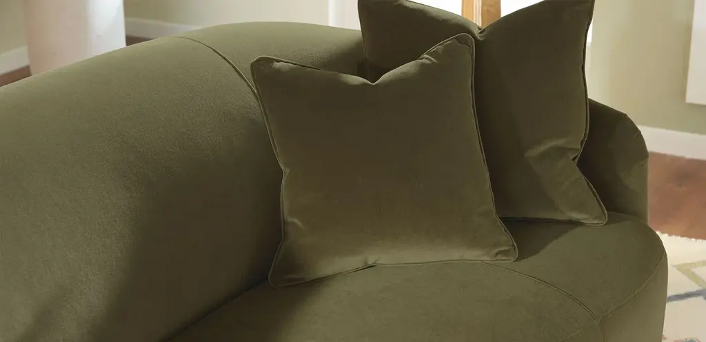 Bring a curved sofa into your living space and appreciate all that it adds to the design: a soft balance to your room's angles, natural traffic flow all around, and a cozy, conversational feel. Our Calista sofa can be dressed in anything from casual bouclé to luxurious velvet. Its fully upholstered base and carefully pleated arms showcase the quality of its tailoring.