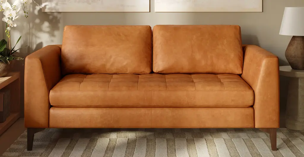 Whether you’re working from home, binge-watching TV, or catching up on your latest book club reads, you can depend on the Calle Sofa for refined comfort. Our supple pure-aniline dyed Italian tanned leather upholstery develops a gorgeous patina you’ll love coming home to. Further personalize your leather sofa with numerous leg options—from wood, to brass, to satin, or black— we offer the perfect tone to suit your taste and style.