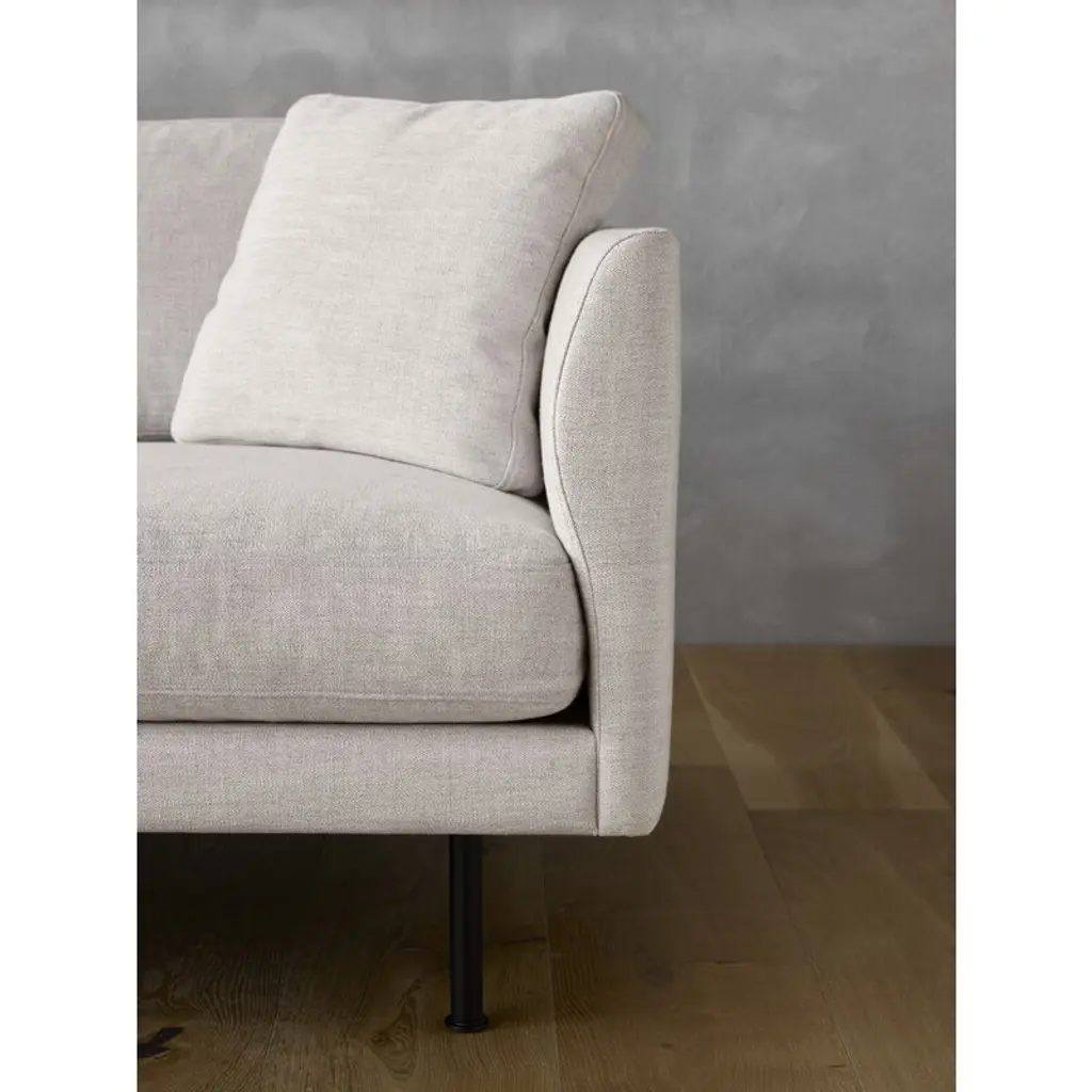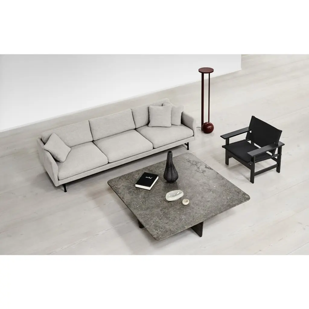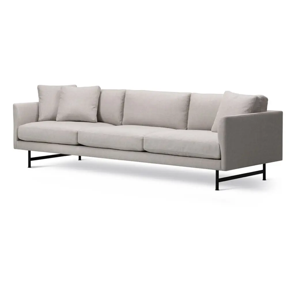 Fredericia’s Calmo sofa is an elegant combination of functional features, streamlined design and subtle details that add a dash of warmth to the sofa’s minimalist expression. Balanced proportions make Calmo an ideal seat for the modern day: the sofa offers ample space for lounging but also enough support for working on a laptop, for example. The result is a classic 3-seater that easily lends itself for a variety of purposes in homes and public spaces alike. Designed by Hugo Passos, Calmo is smart and functional down to the material choices: the cushions are upholstered on both sides so they can be flipped over from time to time to ensure even patina. The sleek legs make cleaning day a touch easier, as the sofa does not need to be moved in order to vacuum under it. Please note that the throw cushions pictured are not included but can be purchased separately in a set of three.