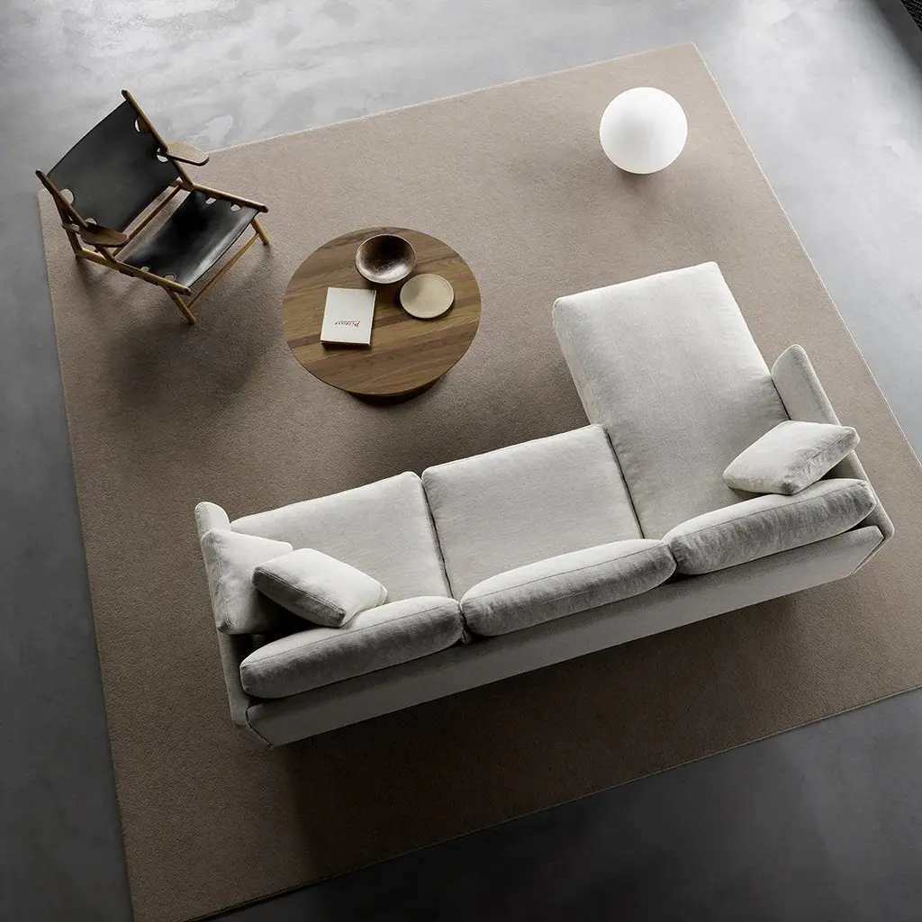 The Calmo 3-Seater Sofa 80 features clean lines and discrete curves. The Chaise can be reversed to place on either side of the sofa. Other signature details include the gentle, graceful curve of the inside of the arm rests. Look closer and you'll see a subtle, discrete seam that swerves from the inside to the outside of the arm rest ending at the back of the sofa. The continuous arm stitching that flows like a stream from the curvy inside of the arm, making its way to the outside and finally turning around and ending at the back of the sofa. Details intuitively designed to virtually disappear. “I see this collection as a contemporary update of Børge Mogensen's ethos - to produce functional, long lasting furniture for everyday life. I am very happy that we have created a relaxed, strong yet elegant sofa family that I hope people enjoy." -Hugo Passos Throw pillows not included. View: Model P5522 Calmo Cushions / Throw Pillows - Set of 3 .