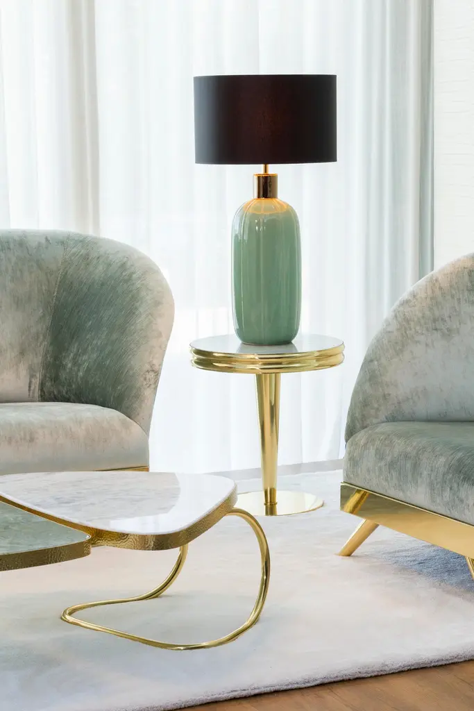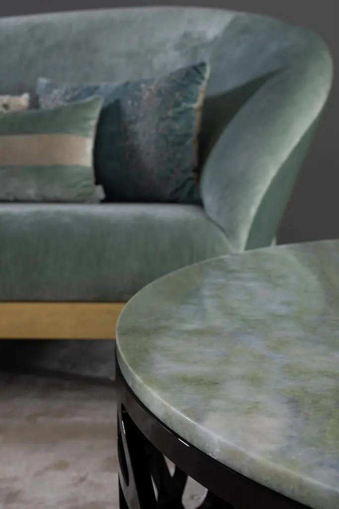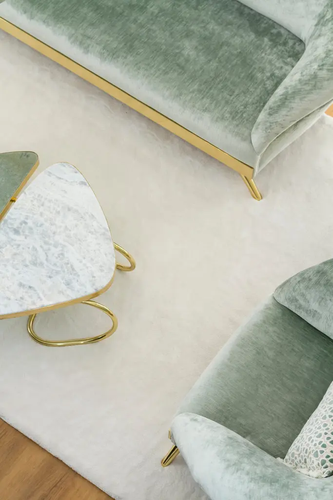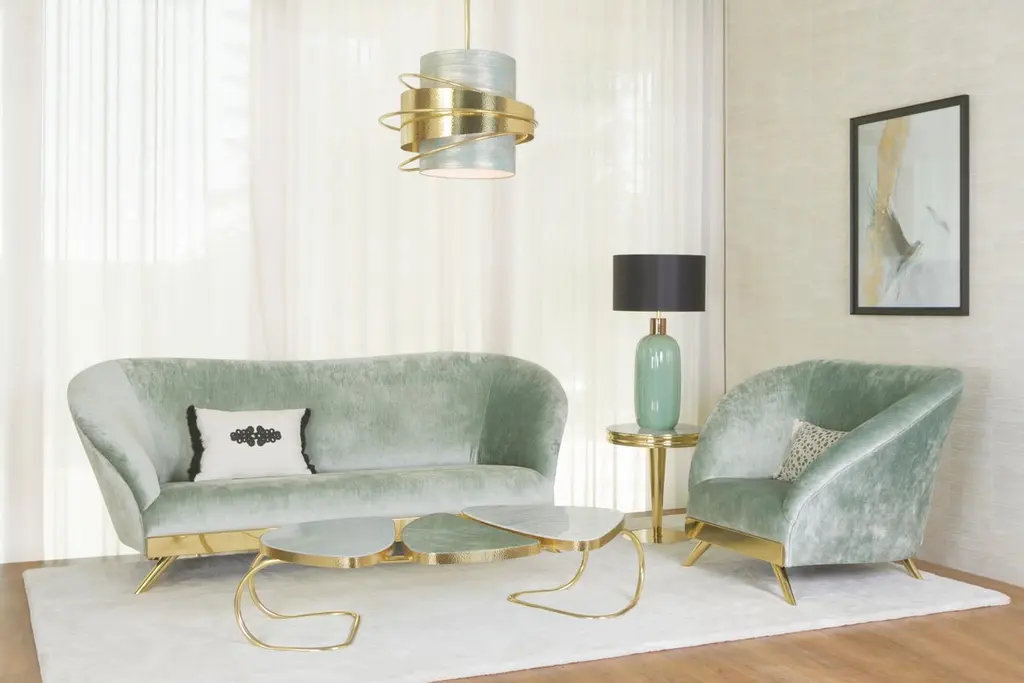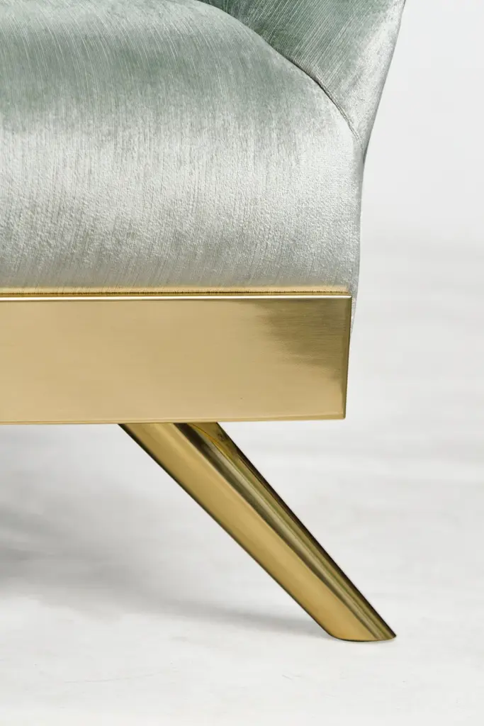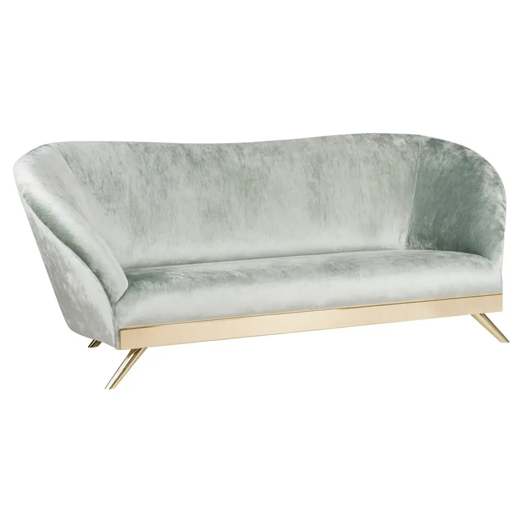 Cambridge Loveseat Sofa, Modern Collection, Handcrafted in Portugal - Europe by GF Modern.With an elegant design inspired by the eternal surroundings of bohemian life, Cambridge exudes a stylish yet serene feel. The polished brass legs and front detail accentuate the upholstery in Dedar mint green velvet, creating a luxurious and bold combination.Since 2014, Greenapple has been designing furniture, lighting and heritage objects with inspiration in the beginning of the 20th century.Saving from oblivion one of Design's Golden Eras by the desire to sparkle interest in the Collectors community in pieces that draw inspiration in known designers who have now become classics: Eileen Gray, Jean-Michel Frank and Adolphe Chanaux, Pierre Chareau, Michel Dufet, Mariano Fortuny, Gio Ponti and so many others who have lead the way… Designed drawing inspiration in one of the golden ages of design, the 1930's, this is one of Greenapple's most iconic sofas.Cambridge Loveseat Sofa Material Codes Dedar Velvet fabric Splendido Salvia Col.030.ME005 Polished brass; high-gloss finishHandcrafted in Portugal - Europe by GreenappleUnique by design, Crafted by peopleFounded in 2005 by Sérgio Rebola and Rute Martins, Greenapple designs and produces in-house luxury furniture for exclusive customers worldwide.Our own in-house production facility allows us to be obsessed with detail, and gives us the freedom to dedicate ourselves to the most demanding tailor-made and customized work. As Rute designs all the unique pieces, Sérgio assures the high-quality standards through the whole process - from design to production; from production to your home. Fine craftsmanship, whether perfected by experienced hands or state-of-the-art machinery is quintessential in delivering top quality experiences.