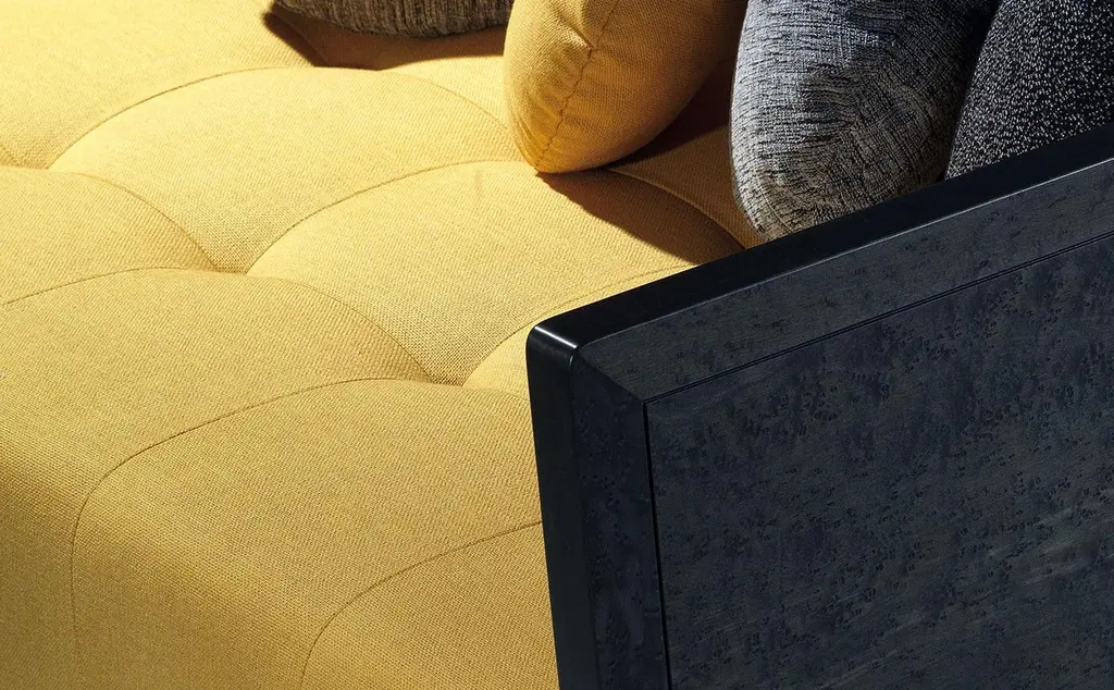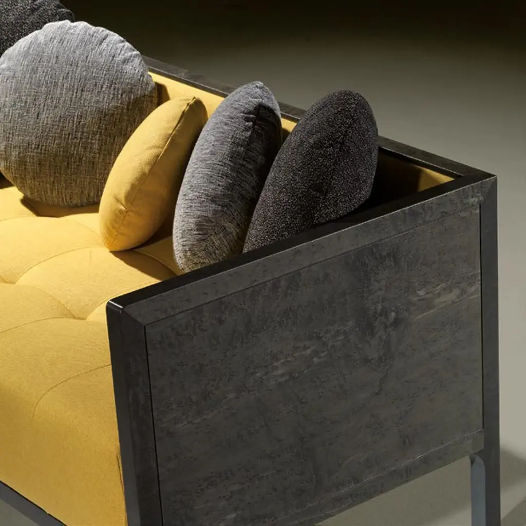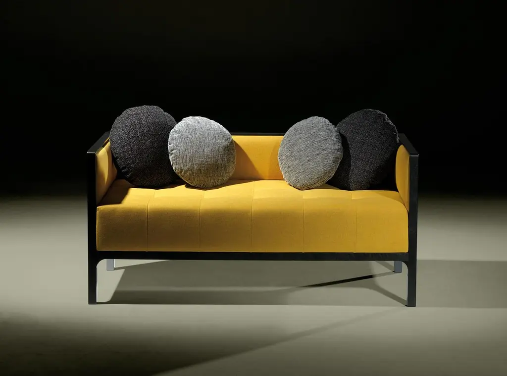 Camelia sofa with 5 cushions (Lelievre fabrics in images),Fabric quantity: 5 m.Bespoke / CustomizableIdentical shapes with different sizes and finishings.All RAL colors available. (Mate / Half Gloss / Gloss)