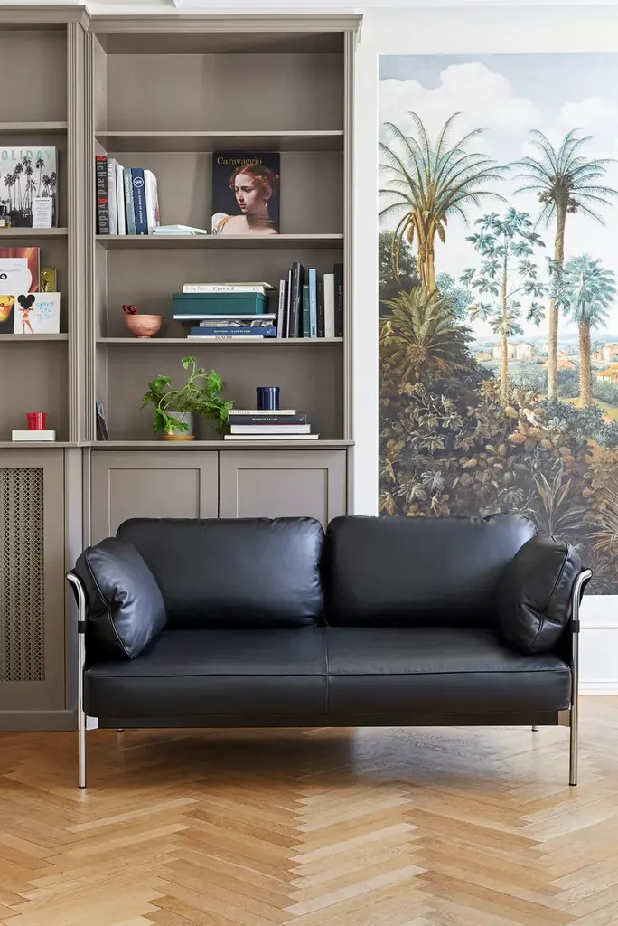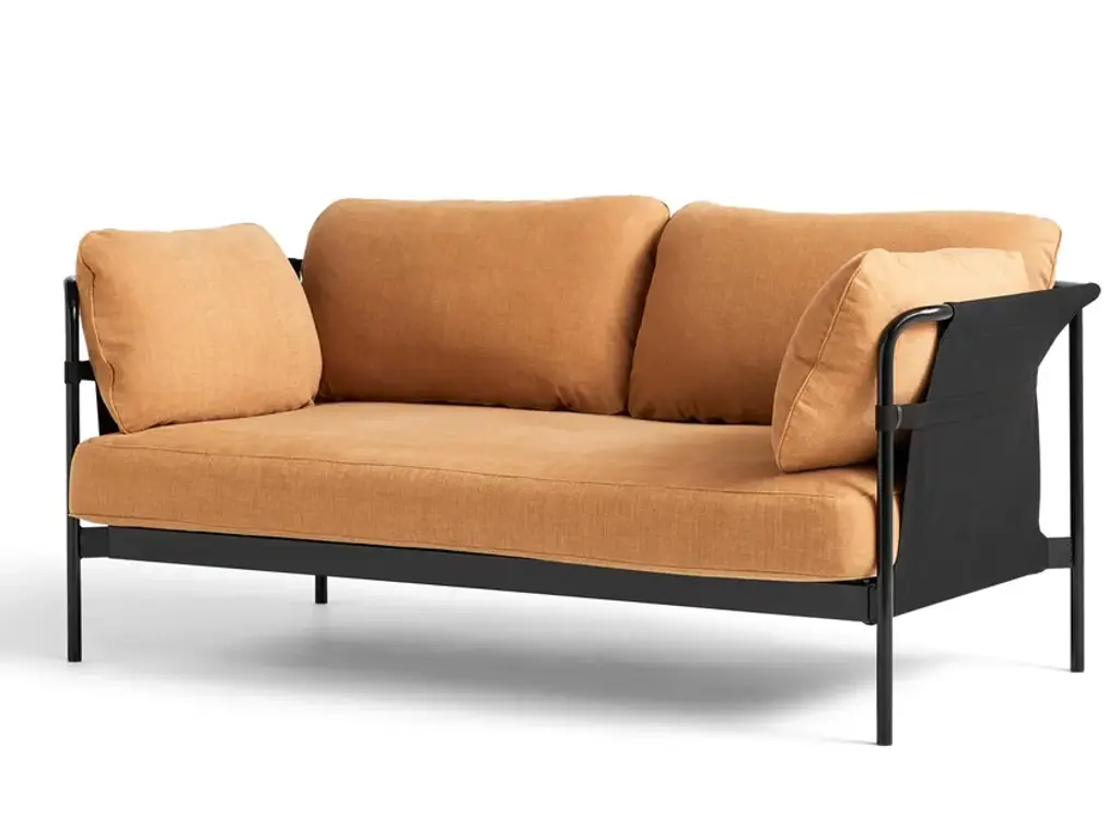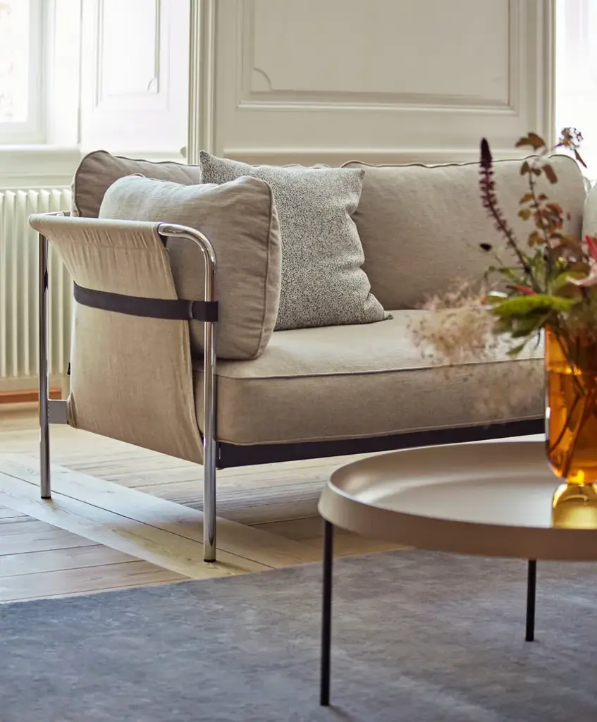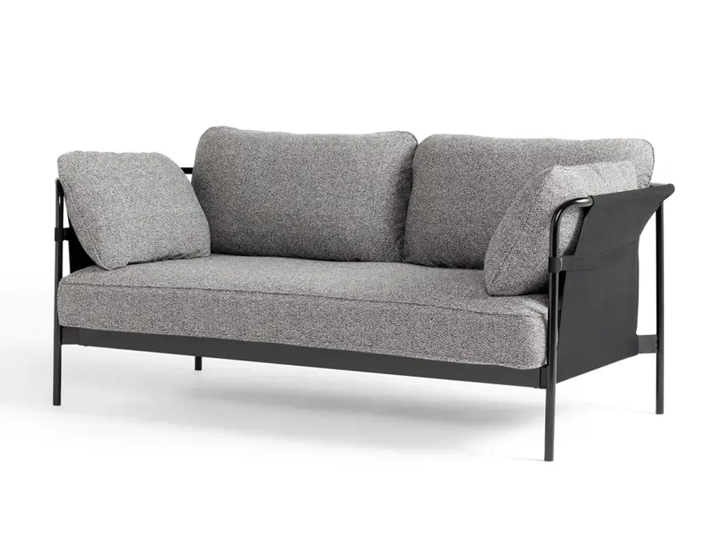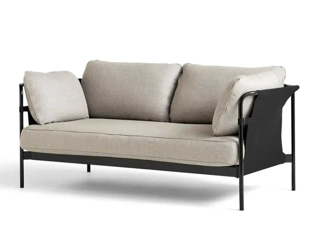 With the Can sofa, Ronan and Erwan Bouroullec seek to go beyond the creation of a practical, elegant and comfortable design. The intention is to reinvigorate the whole idea of the sofa, from something inherently complicated to something simple, relaxed and accessible. The sofa comes flat-packed and can be easily assembled at home from three basic elements – frame, cover and cushions.Frame: Powder coated steel or chromed steel.Mattress & Cushions: Foam and feather duvet.Mattress with integrated anti-slip fleece on the back side. Non-reversible mattress. Piping matches the selected textile or leather.Outer fabric: Black canvas or Natural canvas.Black cotton strap: Attached to the outer fabric.Available in 2 different base finishes:- Black powder coated steel (RAL 9005)- Chromed steelOuter fabric available in 2 different colours:- Black canvas (100% linen)- Natural canvas (100% linen)Mattress & Cushions: Available in 7 different fabrics and leather.