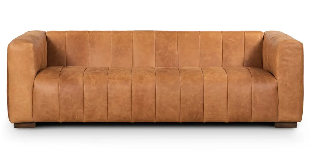 This channel-tufted charmer will add warmth and style to your space. The Canale Sofa features channel-tufted, Italian tanned leather upholstery with a buttery-soft feel—that, like a fine wine, only gets better with age. Its modern, low profile takes your design game up a notch, while the comfort factor skyrockets. The Canale Sofa is ready for all the movie marathons you can dish out.