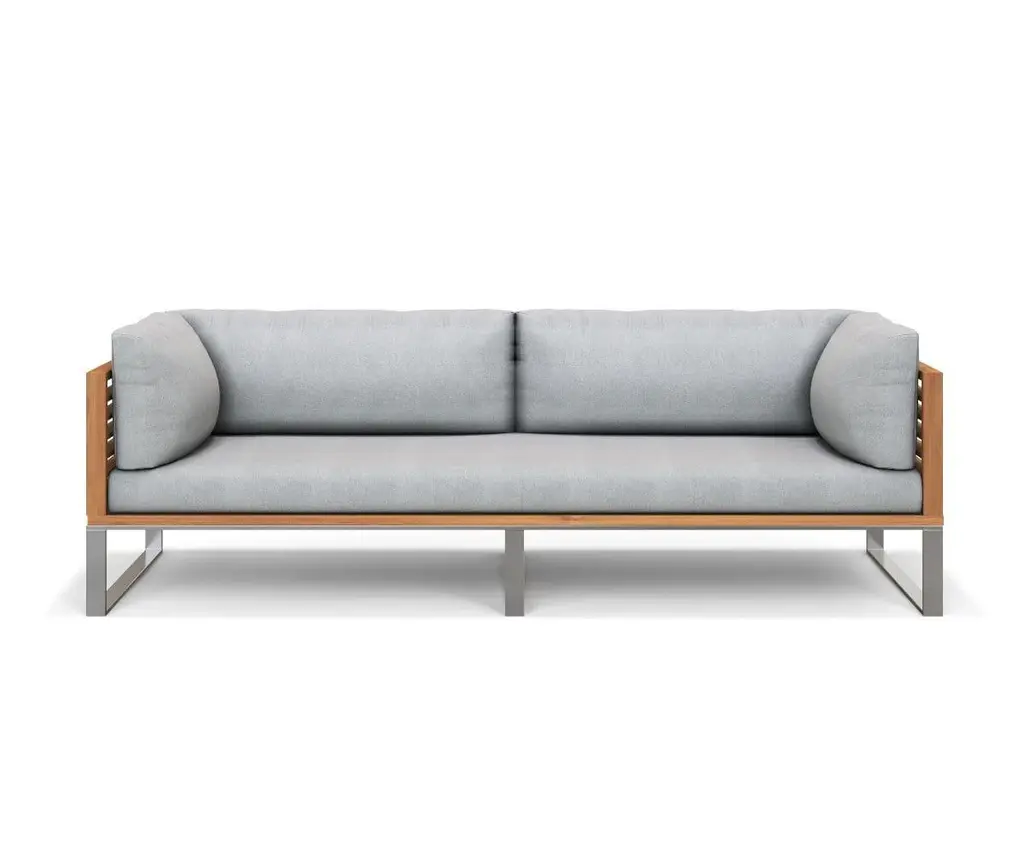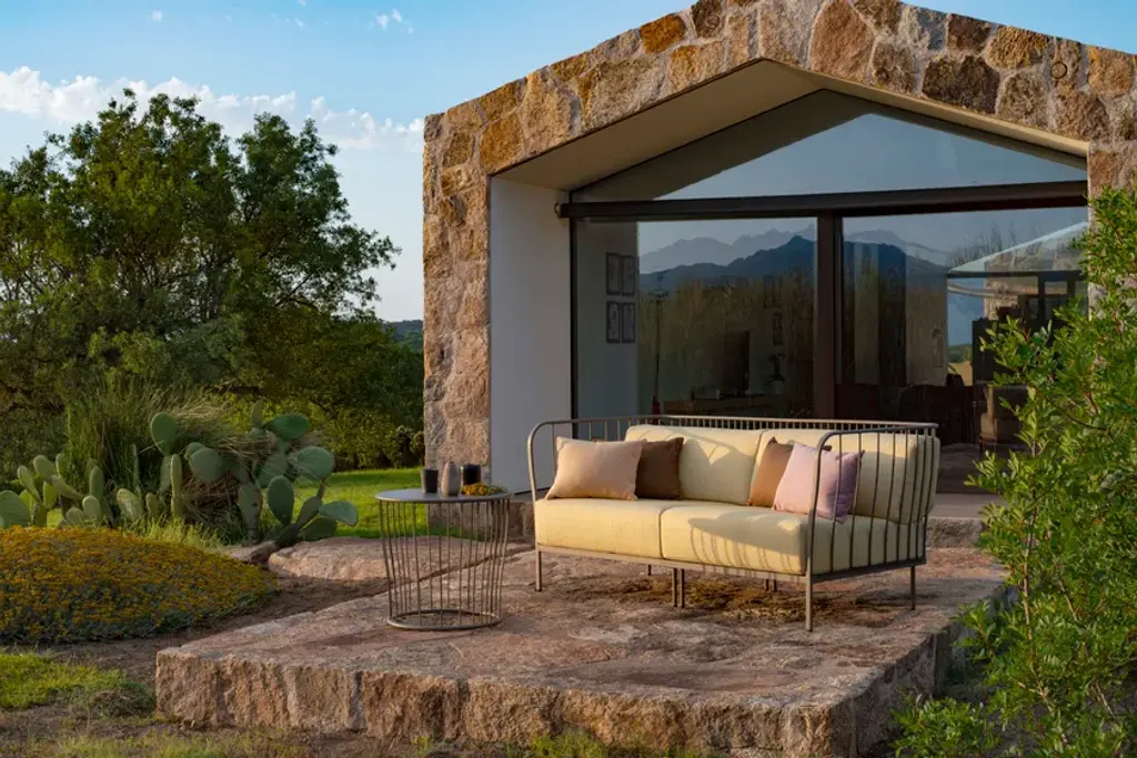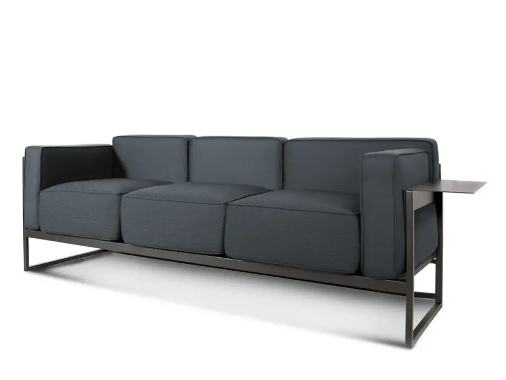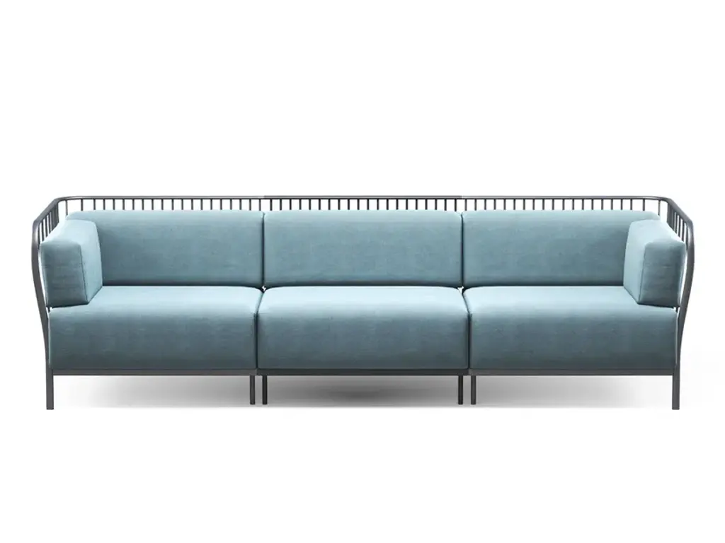 Cannolè is a 2 seater fabric garden sofa, part of the homonymous collection.The Cannolè seating system by Anton Cristell and Emanuel Gargano has a fully welded structure made up of internally and externally galvanized steel tubes. Seat composed of a galvanized rod grid welded on a rod frame. The legs are made of tubular steel. MIG welding, degreasing and cataphoresis pre-treatment and finishing with thermosetting polyester powders. The collection consists of: Corner module sofa, linear module sofa, pouf, low armchair and low table. All Cannolè cushions are made of polyurethane rubber to which a layer of polyester fiber resin is added, all packaged in an internal waterproof polyamide pillowcase.Available colours:Structure: antique iron, matt white, black, maple red, Indian brown, sandCushions: Basic fabrics (all) Standard Fabrics (all) Premium fabrics(all except corsica, greyscale, harlequin, striped polo and lavender stripes)