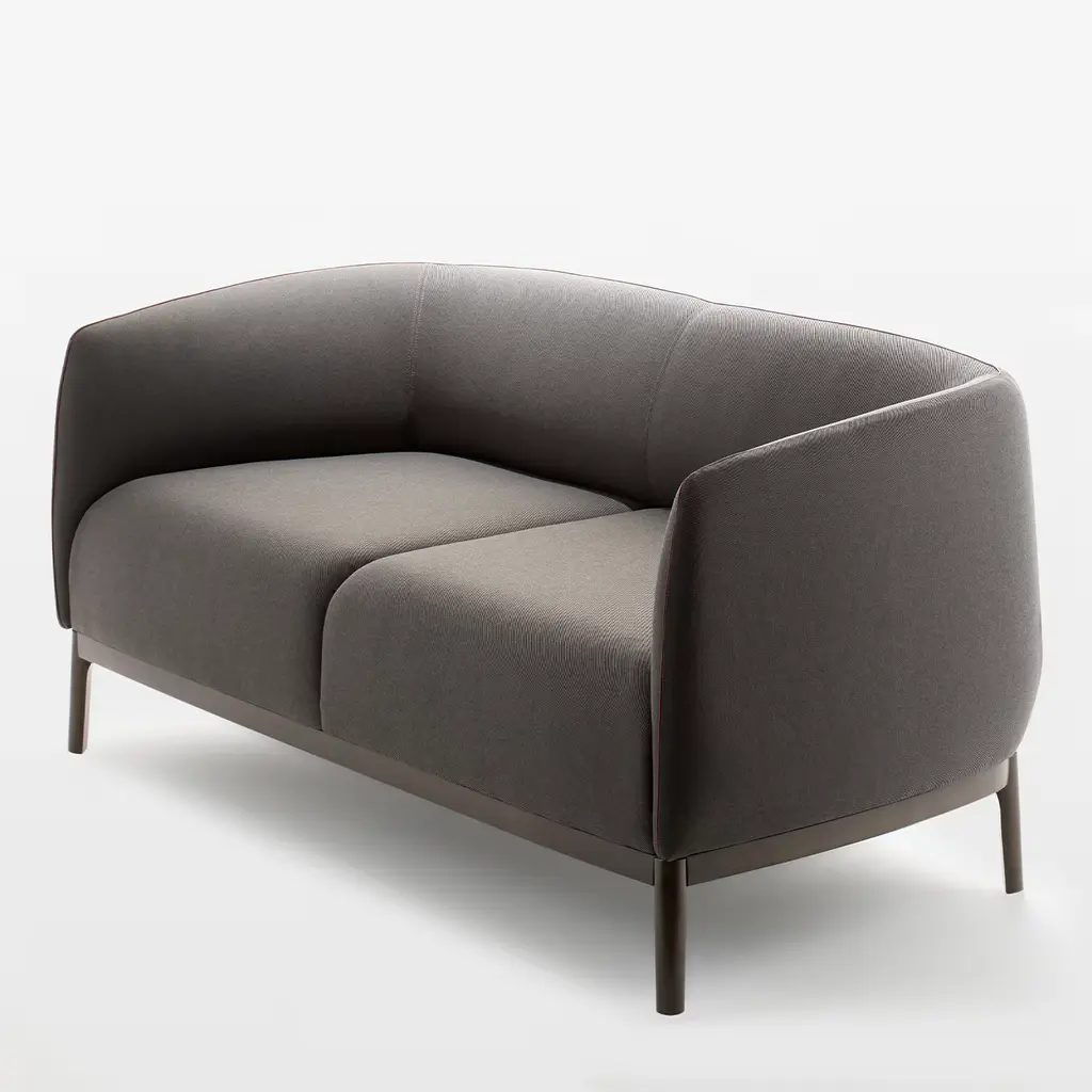 Cape 802 is a two-seater sofa with a frame in beechwood, upholstered in fabric with differentiated density foam filling. Interesting upholstery coordination for added product features. The borders can be contrasting. As seen in the image, the fabric is Extra 02, Remix 3. Please contact the concierge for more information and options.