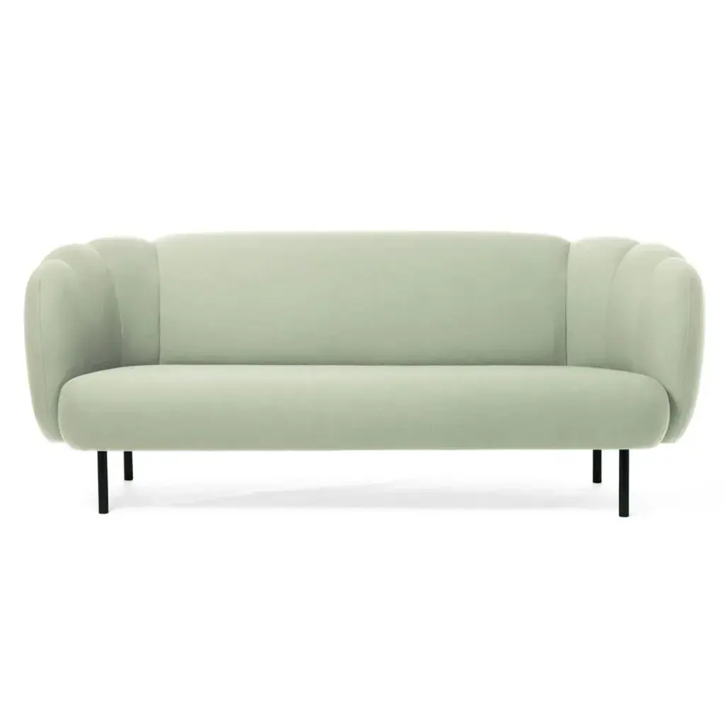 Caper 3 seater with stitches mint by Warm Nordic Dimensions: D 200 x W 84 x H 80 cm Material: Textile upholstery, Wooden frame, Powder coated black steel legs. Weight: 55.5 kg May be available separately in different colours and finishes. An elegant sofa with an organic design inspired by the puffed sleeves and layered designs of haute couture. Its soft lines and chic details make the Cape sofa a natural focal point, preferably in the company of the armchair in the same range. Both items of furniture are available with or without visible stitching. The sofa looks just as elegant in a modern building as in an old-fashioned luxury flat and has a light look by virtue of its slender metal legs. To achieve aesthetic perfection the Cape range is covered with exclusive furnishing fabrics, including 'Hero', whose soft, almost felt-like surface complements the sofas organic shape, and which is designed by Patricia Urquiola. Warm Nordic is an ambitious design brand anchored in Nordic design history and with a timeless, aesthetic style that inspires you to appreciate the little things in life. The company is the result of several years’ intense work on developing a new design brand with design history, quality and personality at its core. Warm Nordic boasts a colourful and charming universe of furniture, lamps and accessories full of personality. Our designs encapsulate the Nordic spirit, which in its essence is timeless, inclusive and warm.