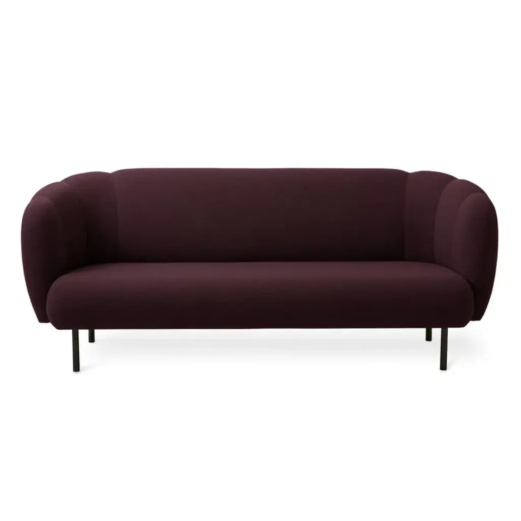 Caper 3 Seater with Stitches Burgundy by Warm Nordic Dimensions: D200 x W84 x H 80 cm Material: Textile upholstery, Wooden frame, Powder coated black steel legs. Weight: 55.5 kg May be available separately in different colours and finishes. An elegant sofa with an organic design inspired by the puffed sleeves and layered designs of haute couture. Its soft lines and chic details make the Cape sofa a natural focal point, preferably in the company of the armchair in the same range. Both items of furniture are available with or without visible stitching. The sofa looks just as elegant in a modern building as in an old-fashioned luxury flat and has a light look by virtue of its slender metal legs. To achieve aesthetic perfection the Cape range is covered with exclusive furnishing fabrics, including 'Hero', whose soft, almost felt-like surface complements the sofas organic shape, and which is designed by Patricia Urquiola. Warm Nordic is an ambitious design brand anchored in Nordic design history and with a timeless, aesthetic style that inspires you to appreciate the little things in life. The company is the result of several years’ intense work on developing a new design brand with design history, quality and personality at its core. Warm Nordic boasts a colourful and charming universe of furniture, lamps and accessories full of personality. Our designs encapsulate the Nordic spirit, which in its essence is timeless, inclusive and warm.