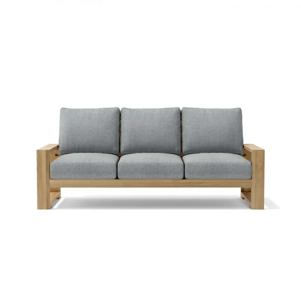 This Capistrano Deep Seating Sofa comfortably sits three and is the perfection addition for your backyard deep seating collection or inside your home. With its spaciously modern, elegant, and comfortable teak design, you can be sure to entertain guests, family, and friends over a good time. Add other pieces such as ottomans, coffee tables, or mix and match with other pieces of the Capistrano Deep Seating Collection. Comes included with 6" thick Sunbrella cushions made to last outdoors without mildew and minimal discoloration. Packaged knocked down with easy assembly and back support adjustable up to four positions.