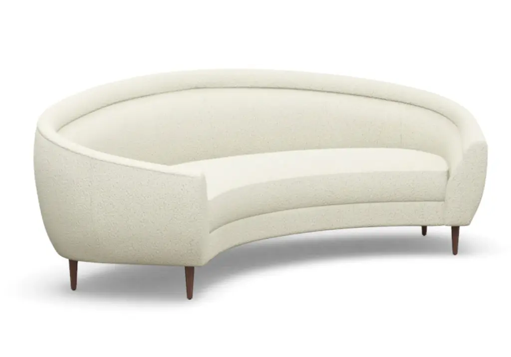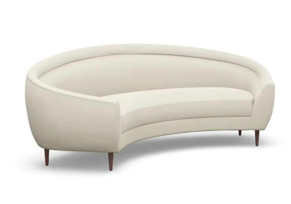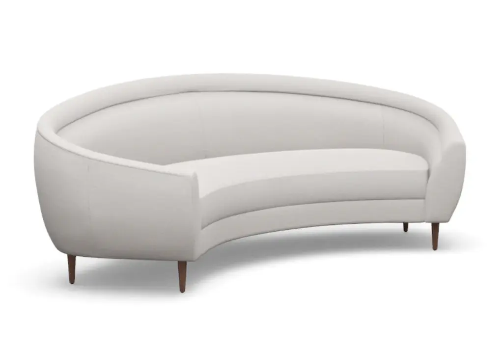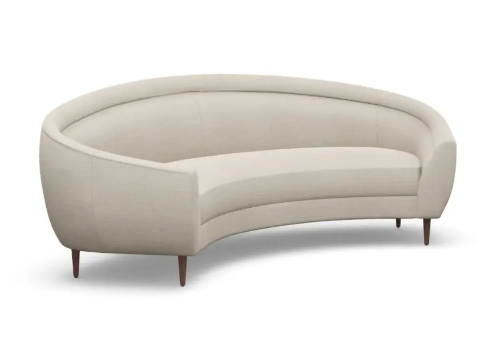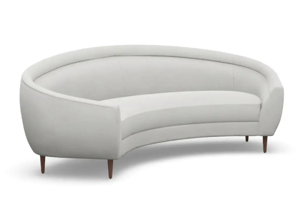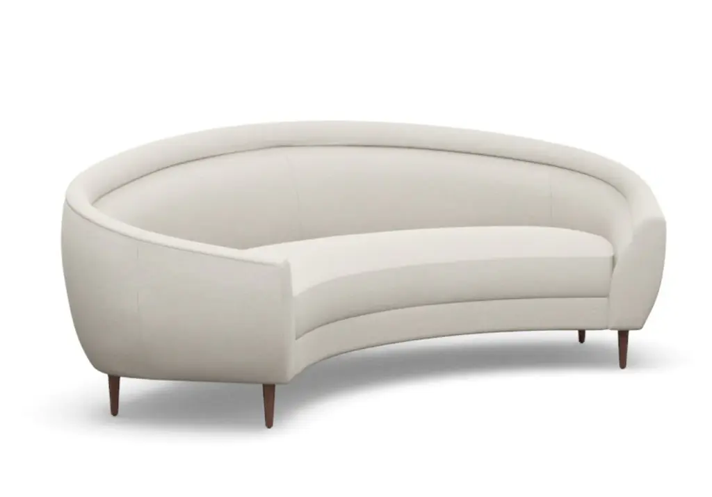 Chic and sophisticated, the Capri Sofa features a modern, curved form with one elongated bench seat. Its ample size, rounded silhouette, and tapered wood legs style well into the living room and office.