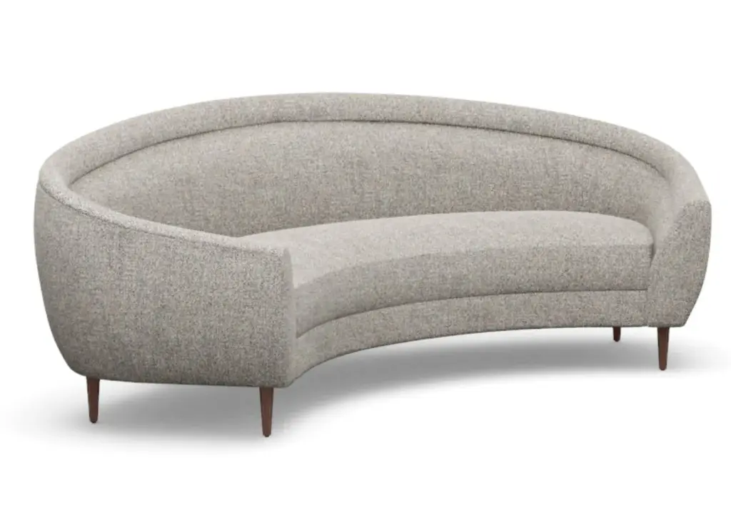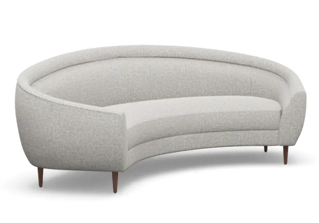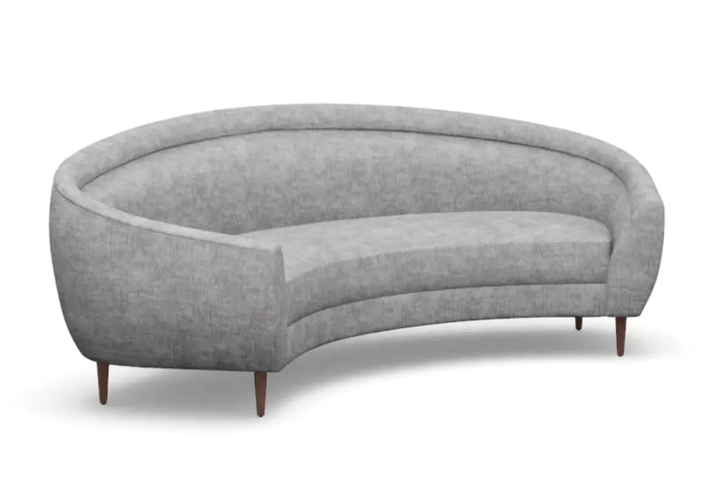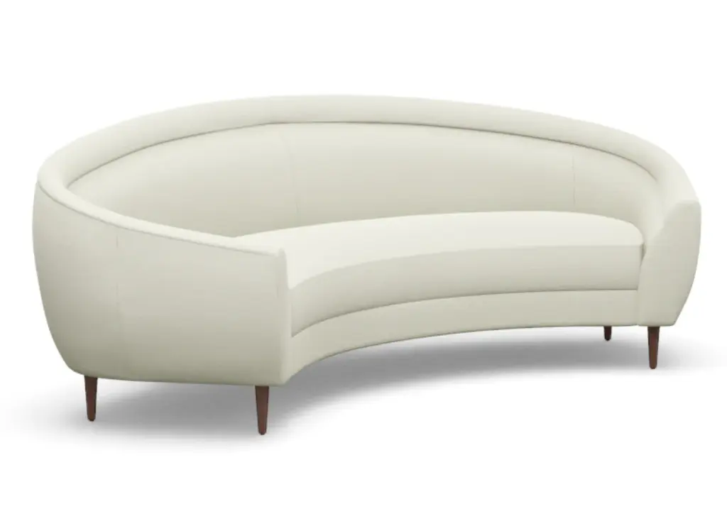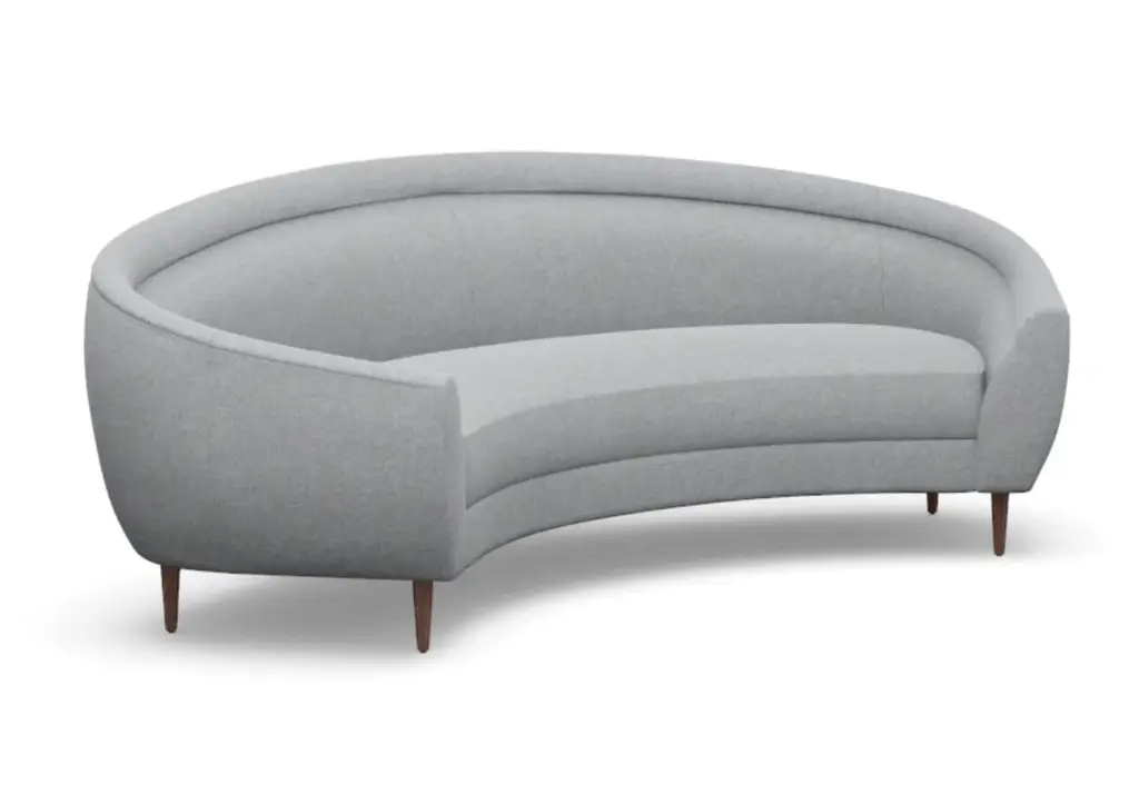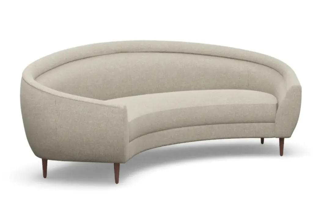 Chic and sophisticated, the Capri Sofa features a modern, curved form with one elongated bench seat. Its ample size, rounded silhouette, and tapered wood legs style well into the living room and office.