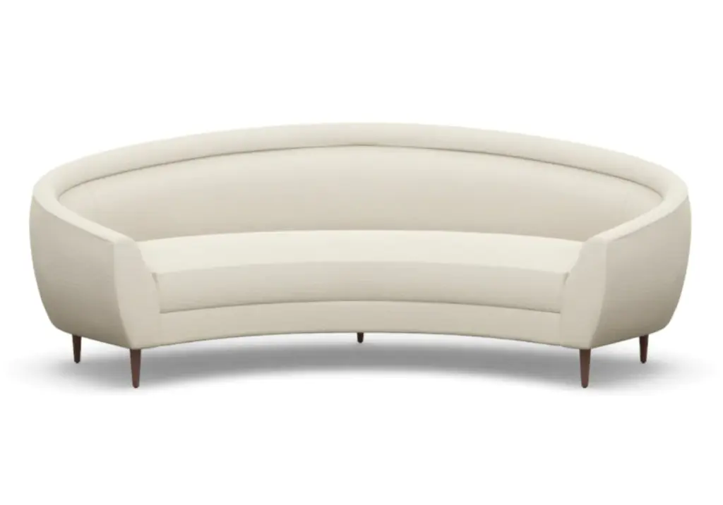 Chic and sophisticated, the Capri Sofa features a modern, curved form with one elongated bench seat. Its ample size, rounded silhouette, and tapered wood legs style well into the living room and office.