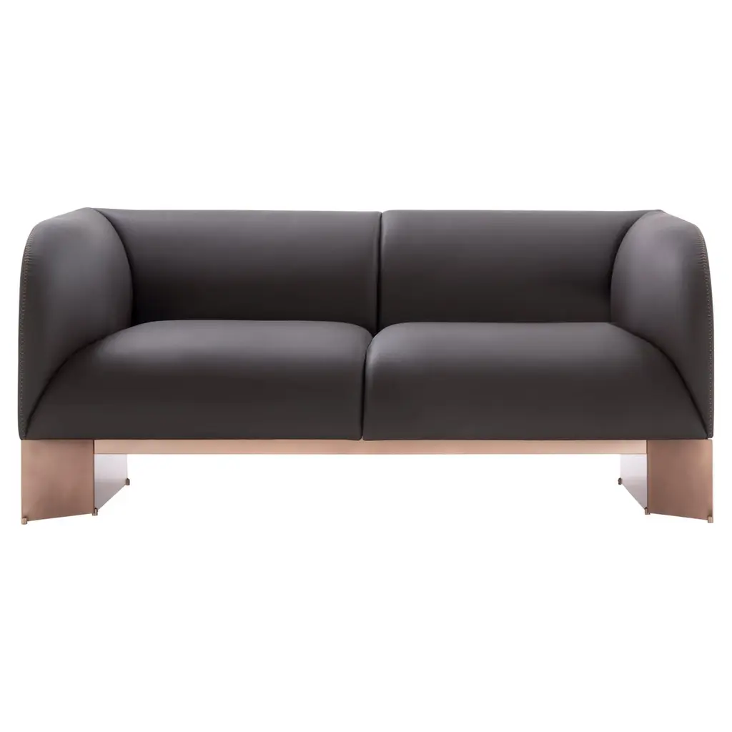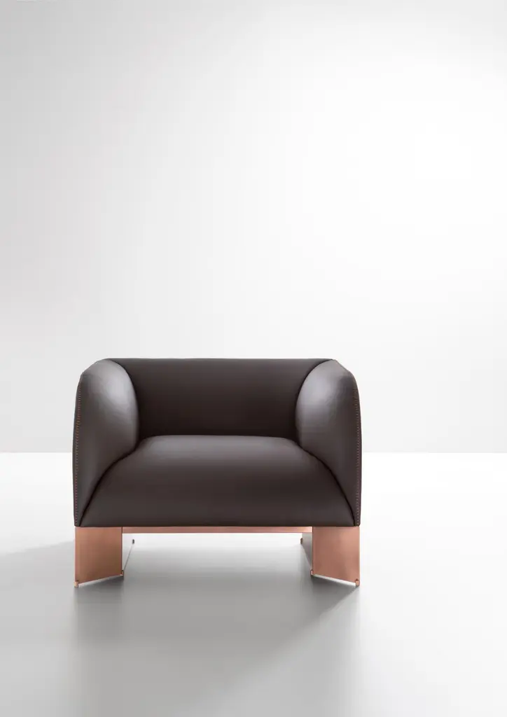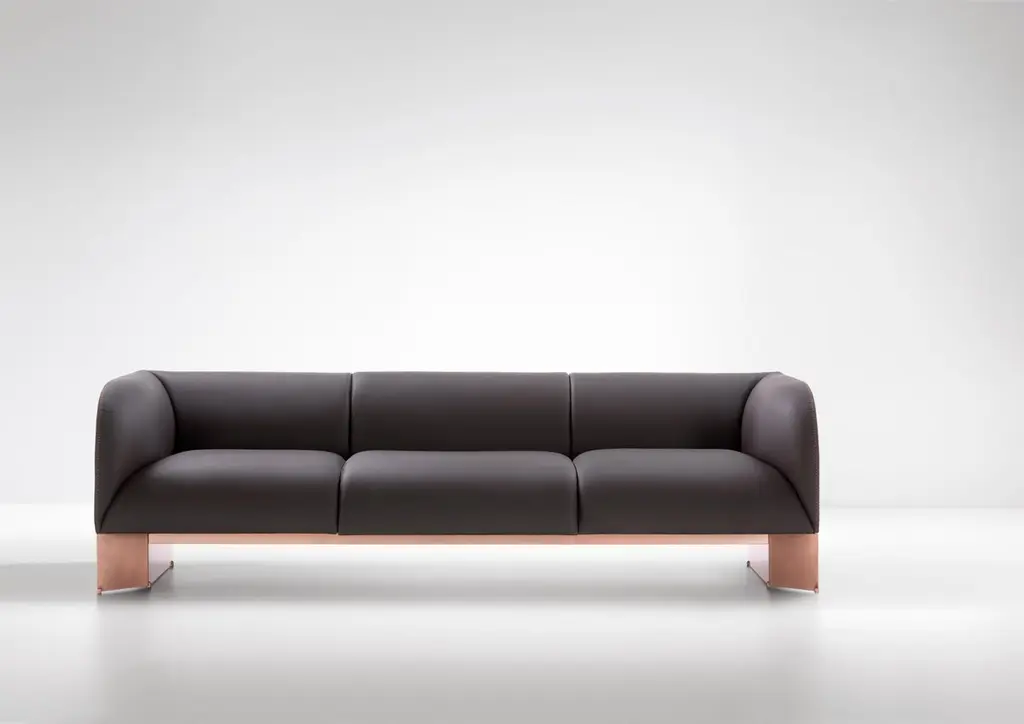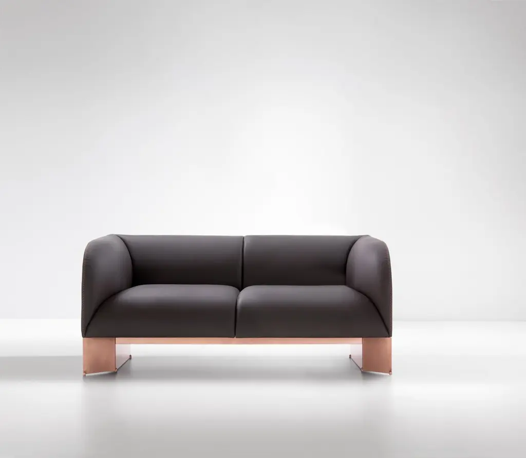Caravan Sofa by De CastelliDimensions: W 160 x D 85 x H 70 cmMaterials: Brushed Copper, Anica LeatherOther versions are available, please contact us for any request.Modular sofa that expresses a harmonious synthesis between the rigor of metal and the softness of the upholstery, which interact in an original formal composure. The profile of the padding is outlined by the precious “horse stitch” stitching, while the base is defined by a metal geometry. The precious metal finish and the sartorial quality of the upholstery create a refined volume, inspired by modernism, which furnish domestic and contract interiors with an important and sculptural presence. Available in two, three or four seat sofa and in the armchair version.DE CASTELLI“HARD COUTURE”Faithful to its decision to reinstate the special role of metal in design and experimentation, De Castelli infuses artisan ideas and workmanship into industrial processes, leading to entirely original results. The encounter with design inspires an approach to materials founded upon respect for their potential, be it hidden or obvious, which emerges slowly in a collection of pieces that, despite being part of a series, remain unique.Unique not only for the hand that has created them, but also for the singular cultural path that focuses on the aesthetic (and not just practical) value of the primordial material with which De Castelli shapes living spaces.A BESPOKE APPROACHEach object, even in the repetition of form, is a creative act in and of itself, one that incorporates a heritage of constantly-evolving expertise and research. The equation that relegates ‘cold’ metals to the margins of furnishing projects is thus overturned, bringing iron, brass and copper, in their infinite variations and finishes, to the centre of an entirely renewed stage, allowing them to finally shine with their own light.SUSTAINABILITYDe Castelli has always been committed to making the entire production cycle increasingly sustainable, aware that metal, the material with which its business identifies itself, is precious and must be treated with care, without waste.PEOPLE FIRSTThe wide spaces of the De Castelli headquarters in Crocetta del Montello (TV) allow those who work to enjoy environments where order, cleanliness and safety are always maintained and guaranteed. An attitude of attention and respect for people that has led to the shared ethical code.