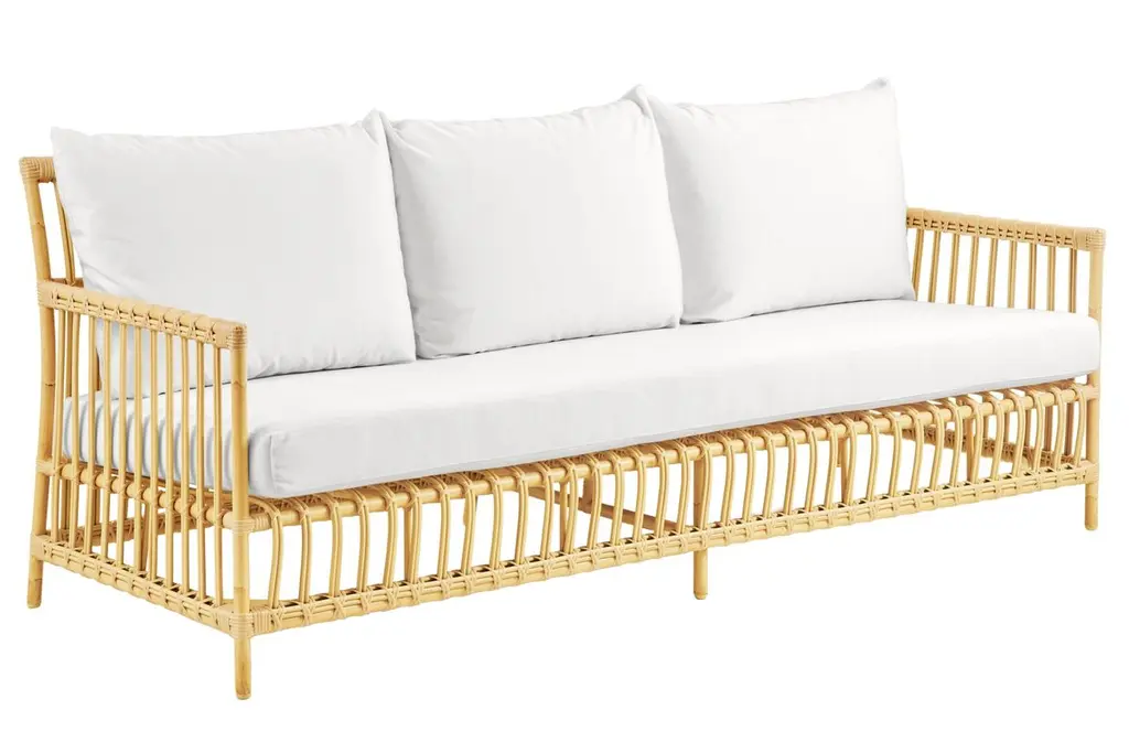 Relax indoor with your family and friends all year long with the Sika Design Caroline Rattan 3-Seater Sofa. This seating sofa is made from strong, lightweight and flexible Rattan material, ensuring this indoor seating option is perfect for year-round use. Plus, the Sunbrella seat and back cushion keeps your comfortable with every use. From the clean lines to the minimalist aesthetic, this indoor couch is the perfect covered porch or sunroom complimentary furniture piece.