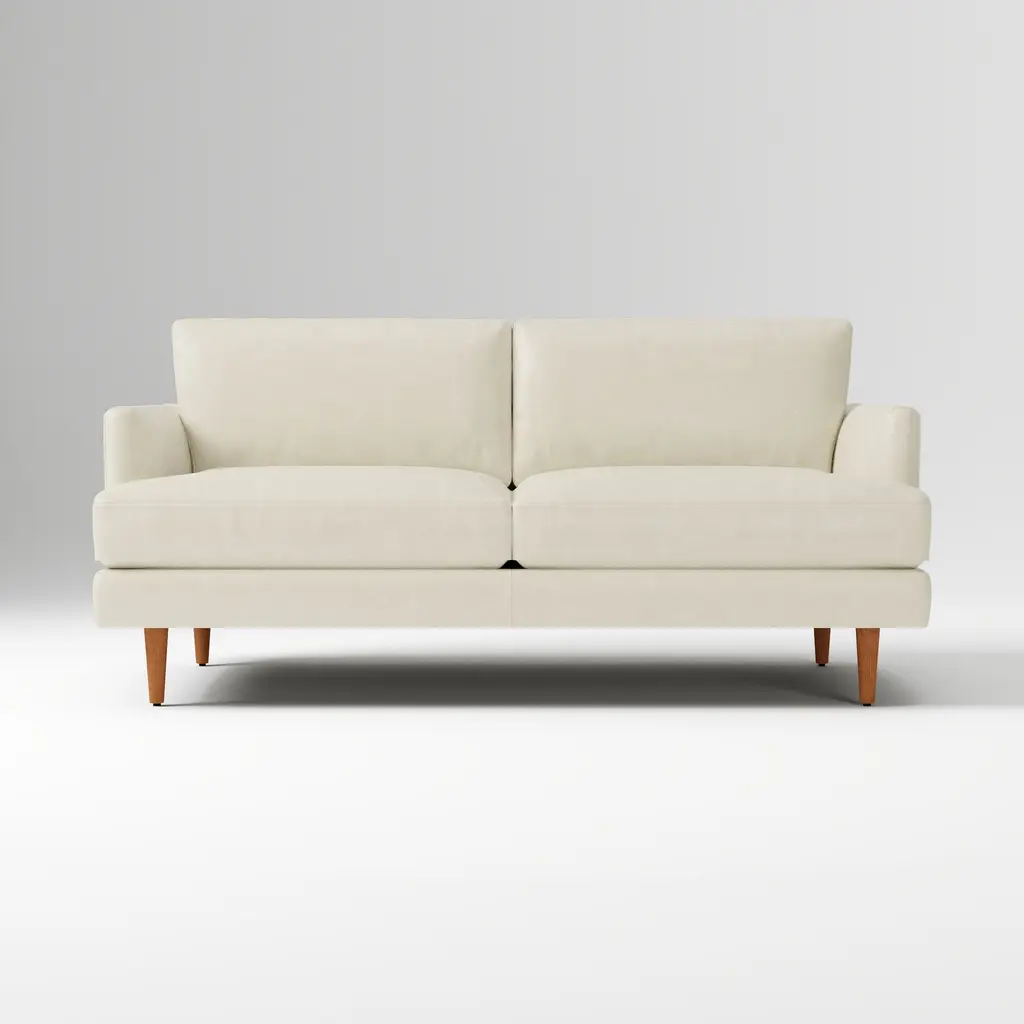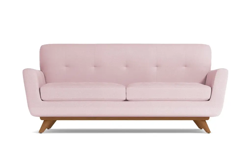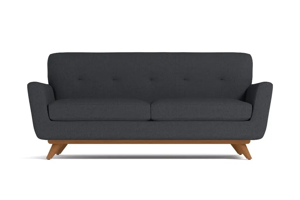 If you choose one midcentury item for your apartment, make sure it's the Carson Apartment Size Sofa. It's both retro and futuristic (look it up - it's a thing), with a flared silhouette, tufted back cushioning and a solid pecan wood base. But this sofa isn't just about looks, we're not shallow! Its deep cushions and solid back make for a comfortable respite far from the busy world. This sofa was built with apartment dwellers in mind - we know space is a hot commodity and the Carson is just what you need if square footage is at a minimum. You get to choose from over 50 exciting colors, one of which is sure to be the perfect compliment to your space. With flared arms, button tufted back cushioning and a sleek solid pecan wood base, the Carson is one of the hottest looks around!
