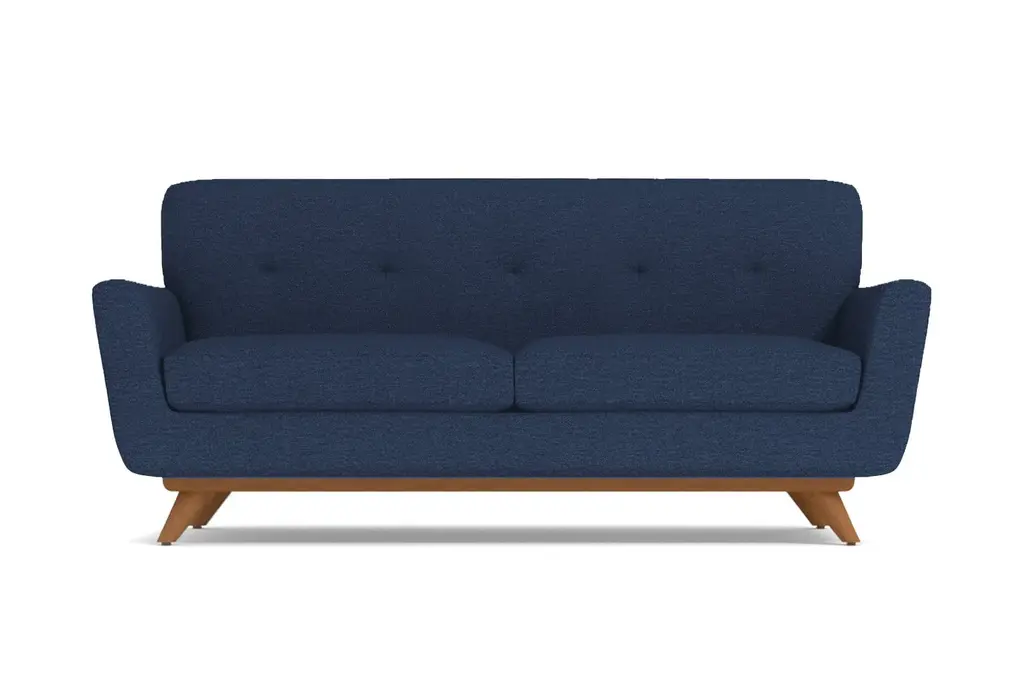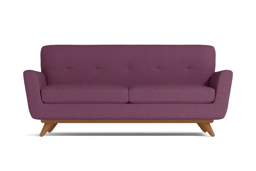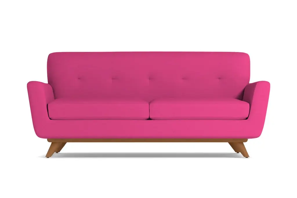 If you choose one midcentury item for your apartment, make sure it's the Carson Apartment Size Sofa. It's both retro and futuristic (look it up - it's a thing), with a flared silhouette, tufted back cushioning and a solid pecan wood base. But this sofa isn't just about looks, we're not shallow! Its deep cushions and solid back make for a comfortable respite far from the busy world. This sofa was built with apartment dwellers in mind - we know space is a hot commodity and the Carson is just what you need if square footage is at a minimum. You get to choose from over 50 exciting colors, one of which is sure to be the perfect compliment to your space. With flared arms, button tufted back cushioning and a sleek solid pecan wood base, the Carson is one of the hottest looks around!