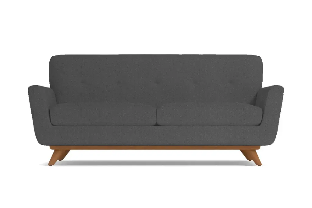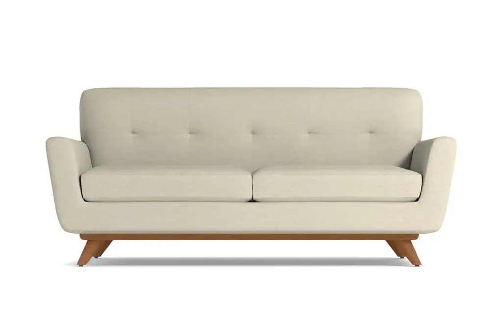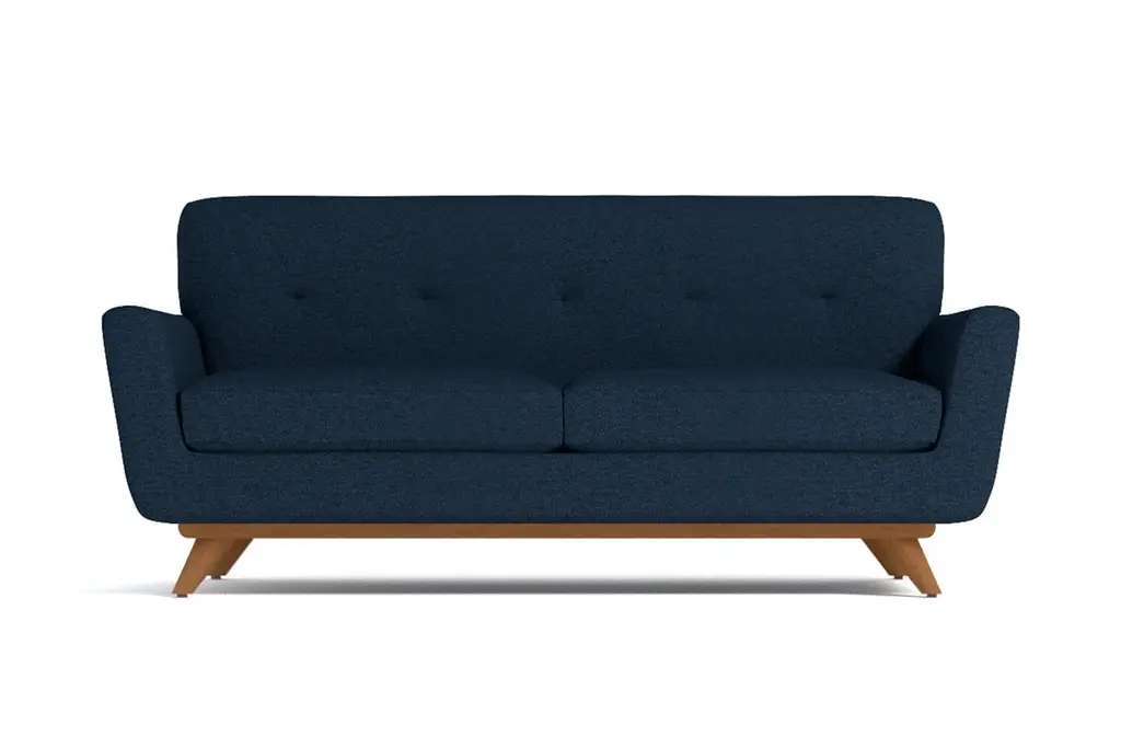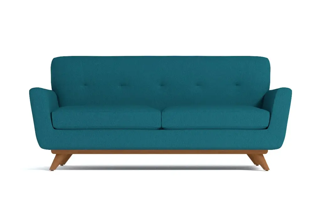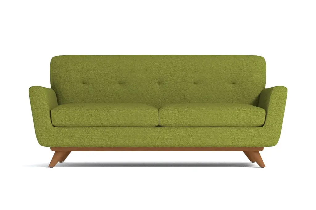 If you choose one midcentury item for your apartment, make sure it's the Carson Apartment Size Sofa. It's both retro and futuristic (look it up - it's a thing), with a flared silhouette, tufted back cushioning and a solid pecan wood base. But this sofa isn't just about looks, we're not shallow! Its deep cushions and solid back make for a comfortable respite far from the busy world. This sofa was built with apartment dwellers in mind - we know space is a hot commodity and the Carson is just what you need if square footage is at a minimum. You get to choose from over 50 exciting colors, one of which is sure to be the perfect compliment to your space. With flared arms, button tufted back cushioning and a sleek solid pecan wood base, the Carson is one of the hottest looks around!