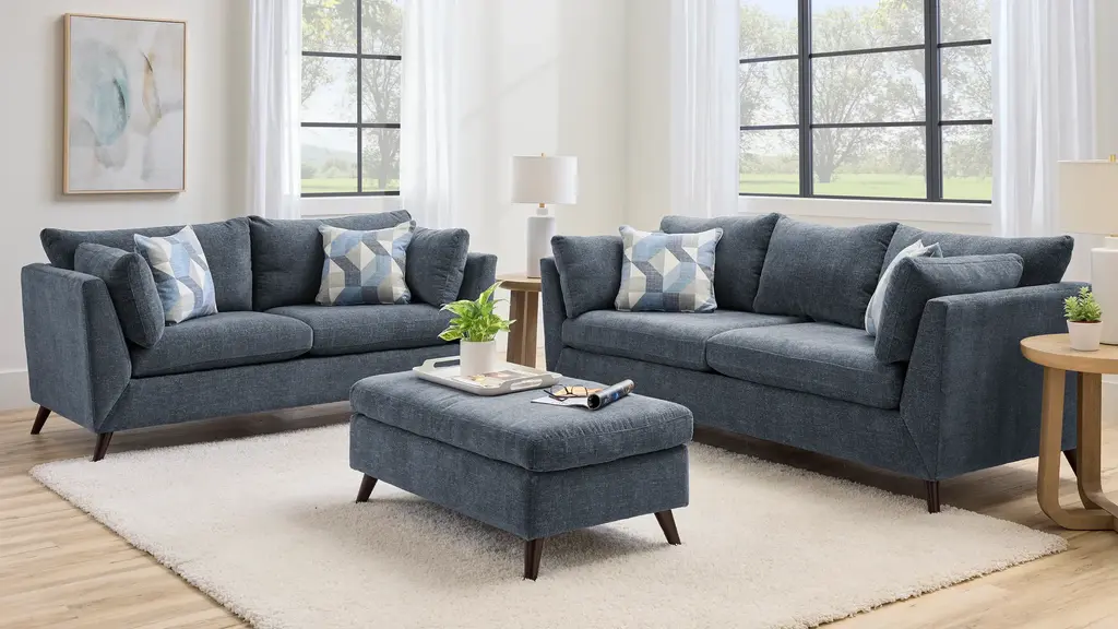 Bring home the iconic allure of mid-century modern design with the Caruso sofa's splash of contemporary cool. Float it as the focal point of a living room to showcase its tailored all-around indigo hue, or pair it with other pieces in this collection for a timeless look that's truly transformative.
