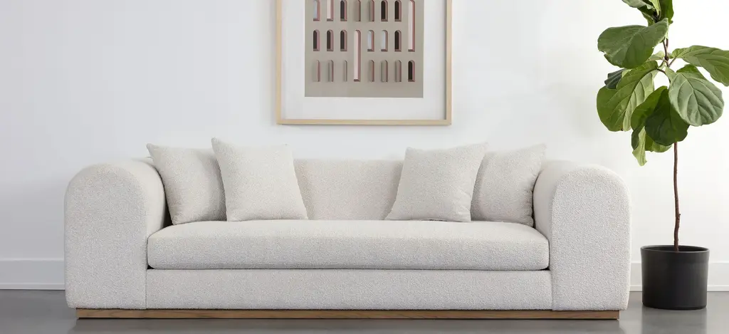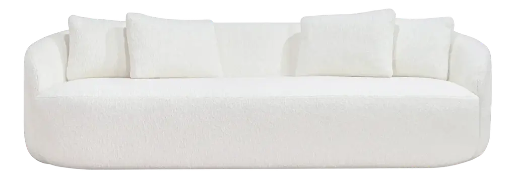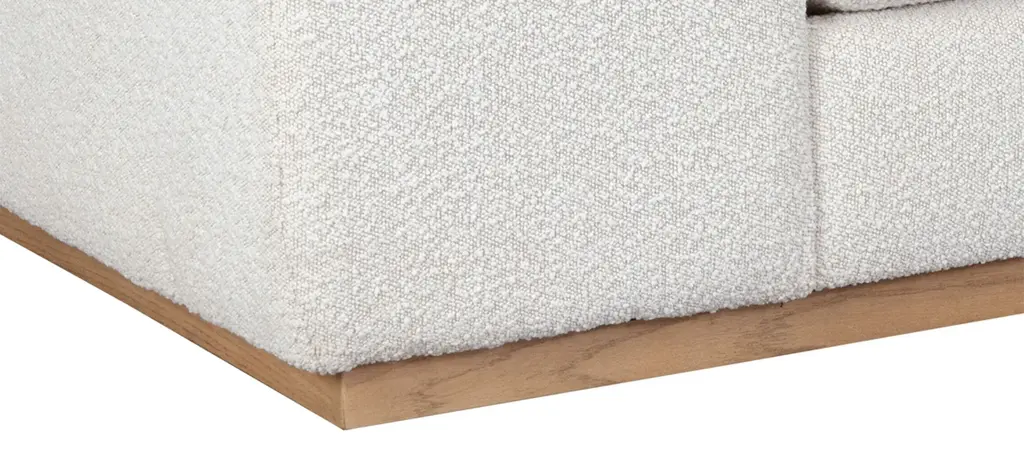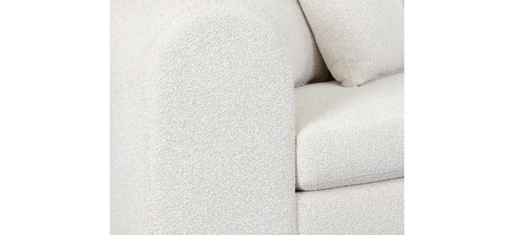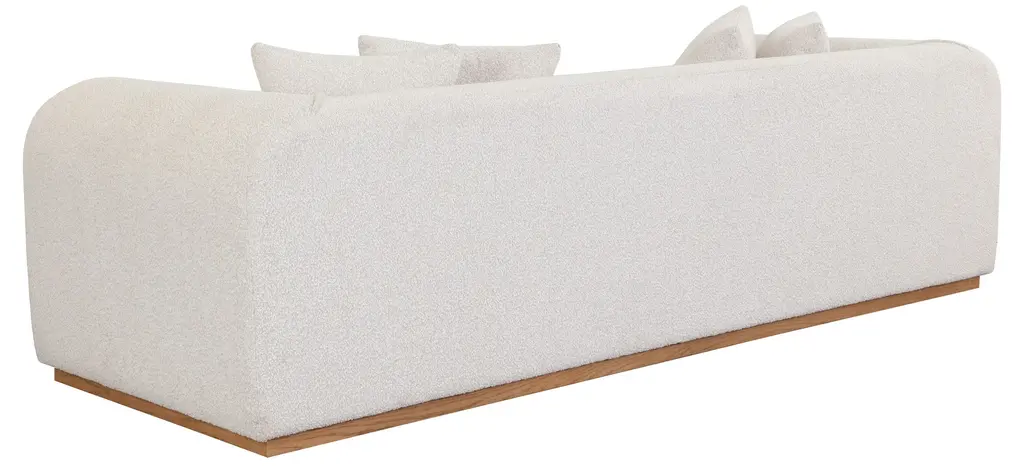 Rounded curves lend the Caspian Sofa a soothing silhouette and is upholstered in our stylish boucle fabric with generous proportions for ultimate comfort. A light oak wood base complements the contemporary style.
