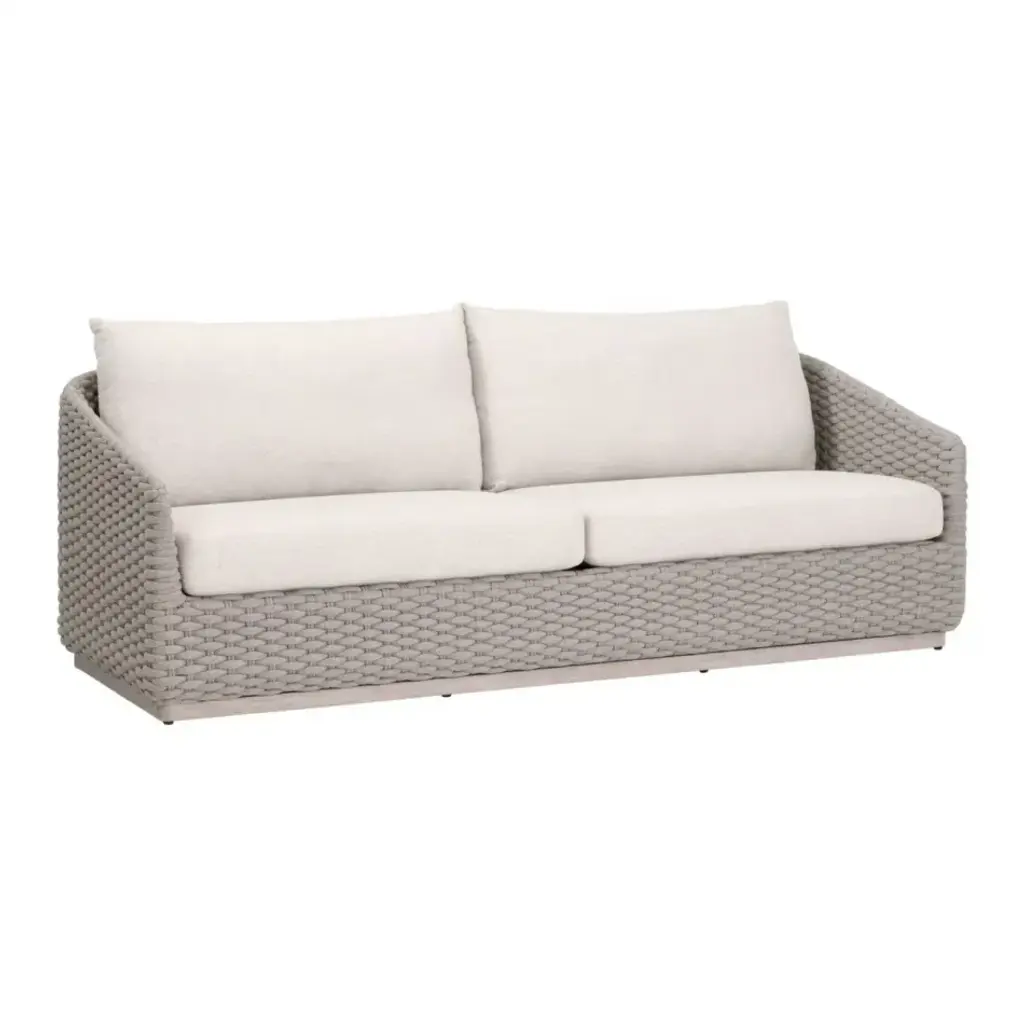 Caspian Taupe Oval Rope Performance Ecru Weave Washed Ever Teak Outdoor Sofa 89"