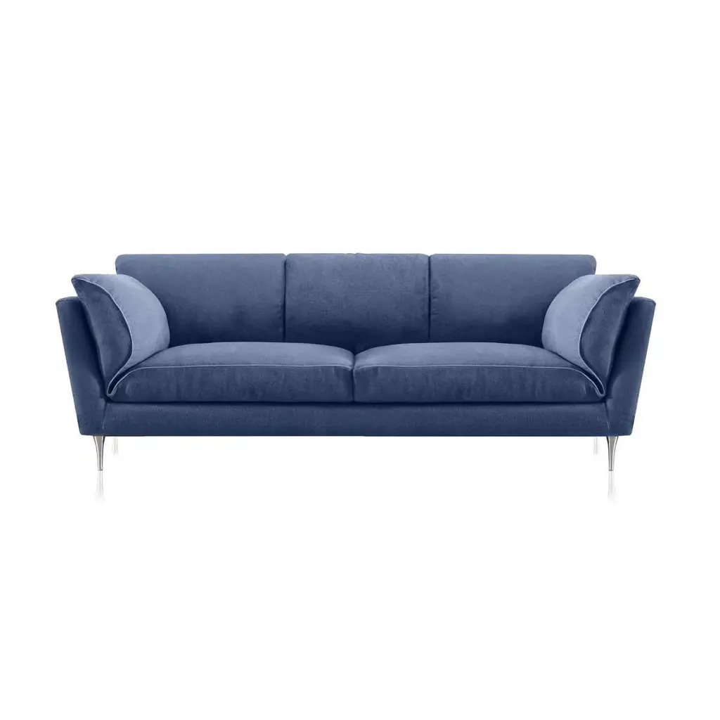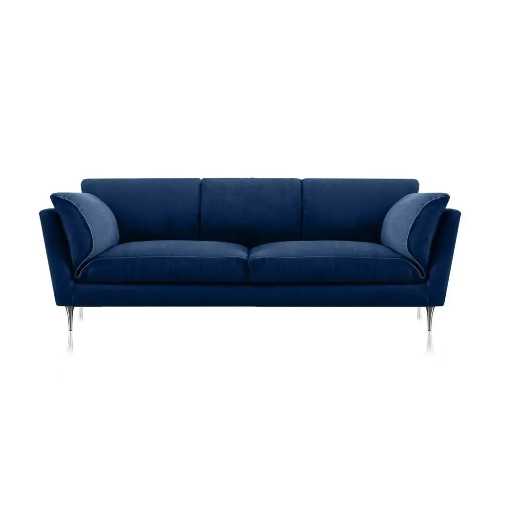 Contemporary, romantic and made to relax.Evoking the clean and minimal lines of mid-century design, this sofa will make a statement in a modern living room. Our bestselling sofa is all about contemporary design, mixed with a little romanticism. Check out the angled lines and the playful side cushions - just push them into position and rest your head to fully sink in and relax.D3CO is the only producer of 100% natural and plastic-free sofas worldwide.Materials:100% natural latex paddinggoose down layerinternal frame solid dried beech woodjute belts with steel springspolished aluminium feetpressed cotton paddingsteel and cotton zippersremovable cover Signed by Maker,Labeled by Maker,Labeled with Country of Origin