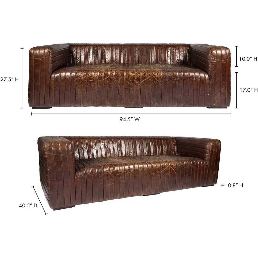 Dapper, decadent and deserving of a double-take, Castle is defined indulgence as one of our most handsome designs. An ideal sofa for the living room, den or office, it sits firmly in a solid wood frame and blocked, uncomplicated industrial style. Wrapped in premium, channel-stitched top-grain leather and with spacious seating for 3, Castle’s foam with spring support cushion is extra deep and just perfect for unwinding in. Stately, bold and versatile, this generous design is suitable for the home, commercial or retail environments.