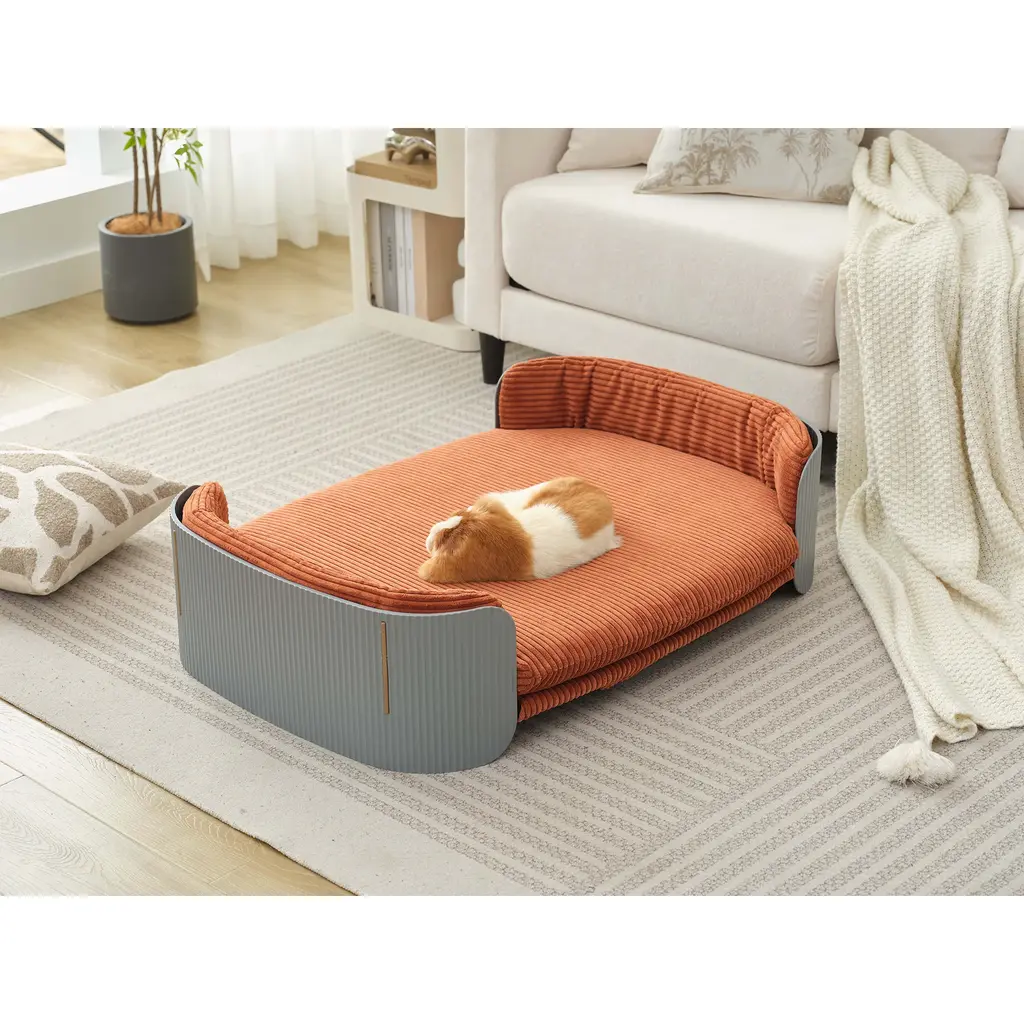 【Product Features】 ★[Ideal Size]The size of cat bed is about 33.4"Lx20.1"Wx10.23"H. Medium size cats and small dogs can comfortably sleep on it. ★[Off the Ground Design]The pet sofa bed height 5 inch, in the hot summer, it allows the air can flow through the bottom, cool and ventilated. Besides, it avoids cat and dogs sleeping on the floor for a long time which is bad for them. ★[Removable & Washable]The soft fabric of the cat sofa bed can be easily washed and dried, machine washable, ensuring a clean and refreshing environment for cats and puppies. ★[Easy to Assemble]Set it up in 10 minutes or less can assemble the cat couch. Your kitty can start to relax in no time. Also you can take it anywhere, suitable for both outdoors and indoors. ★[Stable Design]The pet couch is made of high quality materials, has stable structure, can easily hold weight up to 30 lbs. Dogs and cats won't sway when they turn over on the elevated cat bed, ensure they can sleep peacefully. 【Keep it looking its best】 1.Fabric furniture Care;Dust regularly. Clean gently with a clean, slightly damp cloth. Professional cleaning is recommended. 2.Wood Furniture Care:We recommend dusting frequently with a clean, soft, dry, lint-free cloth. Clean the surface by rubbing in the direction of the grain and wipe dry. 3.Avoid direct sunlight. 4.Avoid the use of all chemicals, household cleaners, abrasives, or cleaners that contain lemon, vinegar, or other acids that may damage the finish. 5.Do not place hot appliances, such as curling irons and hot hair dryers directly on the countertop. 6.Spot clean using distilled water and water-based cleaning agents, foam or mild water-free cleaning solvents. 7.Always test a small inconspicuous area first. 8.Hardware may loosen over time; periodically check to make sure all connections are tight 【Notes】 1.Size Notice:Manual measurement has been used, there may be some reasonable errort, thanks for your understanding. 2.Color Notice:Due to factors such as display equipment and shooting environment, the color of the item may be slightly different from the picture, which is a normal phenomenon, please refer to the actual item 3.Assembly Notice:Please read assemble manual in advance. Please do not over-tighten nuts, as this may cause distortion or breakage. 4.It is recommended to put a layer of foam or soft cushion on the floor when installing to avoid scratching the floor. 5.If the item has any defects, damage or missing parts, please contact us with pictures or videos so that we can understand your needs and help you quickly, and always remember to retain its original packaging to ensure any return requests. We will try our best to solve any problems you may have. 6.If you receive the wrong product, please attach the product picture, the infographic of the outer package and the picture containing SKUs, so that we can verify and quickly deal with it for you