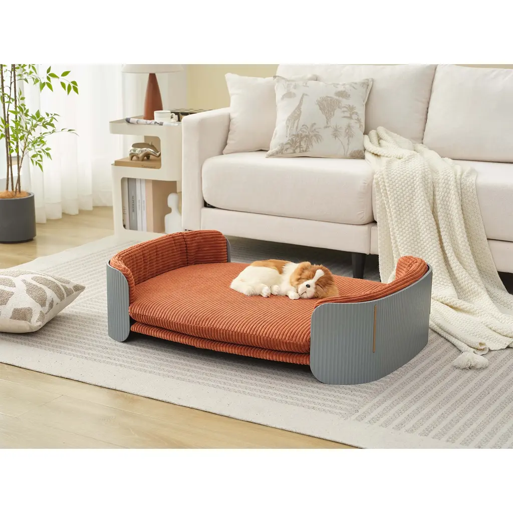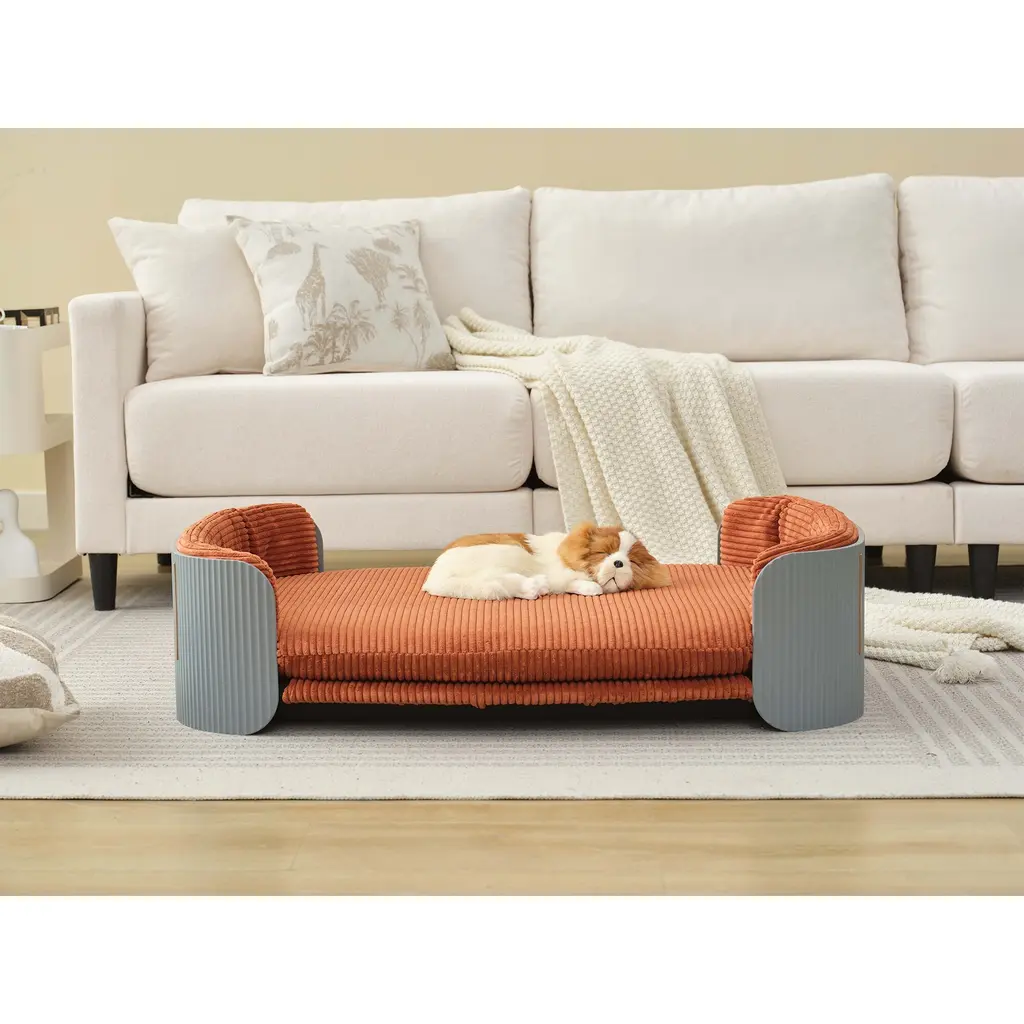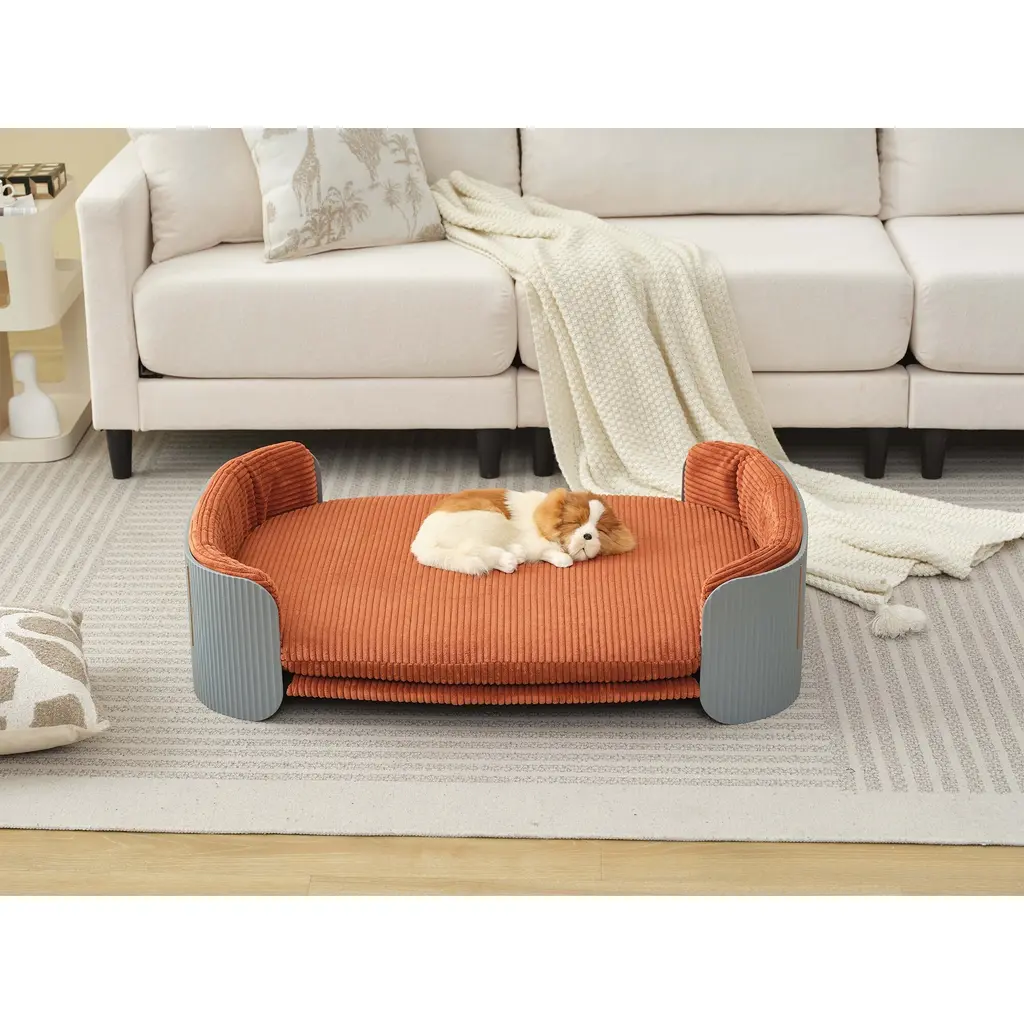 Cat Couch Bed, Pet Sofa - Grey+brown