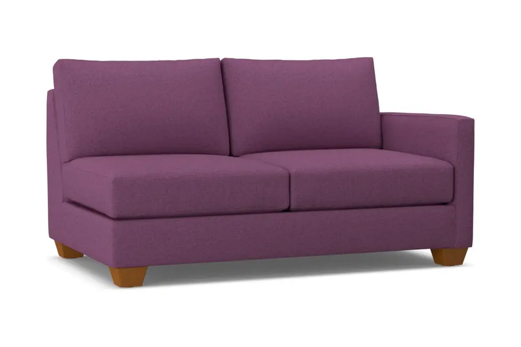 People are busy, and not everyone can pack up and head to Catalina Island anytime they please. If you can, then we salute you. But anyone can enjoy a relaxing evening in their home with the Catalina Apartment Size Sofa. Like the island, our Catalina Collection has a timelessly stylish quality. This simple but sleek sofa is available in two sizes, a compact 58 inch loveseat or a 6-foot wide apartment size sofa that comfortably seats two (or fits one friend after a long night.) The high track arm is ideal for taller people, while the wooden blocked feet won't dig into your floor. Apt2B has this and many other condo size sofas in a variety of fabric choices, and we hand-make each one in the U.S. with a limited lifetime warranty for the best value you can find. The Catalina Collection is the perfect choice for a look that never goes out of style. It's simple and sleek design features a high track arm and wooden blocked feet.
