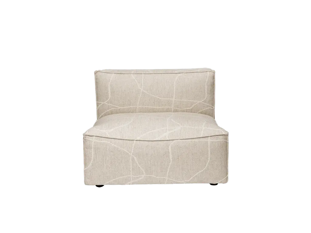 Crafted from a premium Italian yarn blend, this fabric draws inspiration from Can Lis. Expressive, raised lines are woven into a richly textured surface, evoking the fluid motion of birds in flight. This abstract pattern encapsulates a sense of grace and freedom, while the fabric's tactile depth and material richness contribute to a warm yet sophisticated presence. The Catena Series is comprised of individual sofa modules that can be combined in multiple ways to create the desired expression. The embracing, beanbag-inspired shape of the low-slung sofa is generously dimensioned for all-out relaxation and cosiness. Paired with the fabric, the Catena Sofa offers an inviting sense of comfort that enhances the fabric's rich texture. Together, they establish a harmonious interplay between form and function, uniting tactile luxury with natural inspiration. Additionally, the inner structure of the Catena Sofa is constructed with FSC-certified wood.