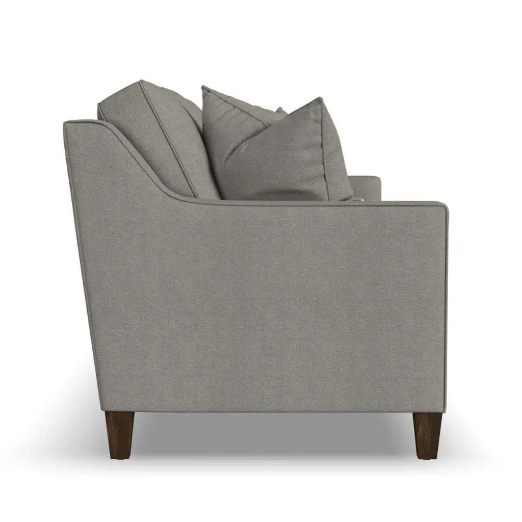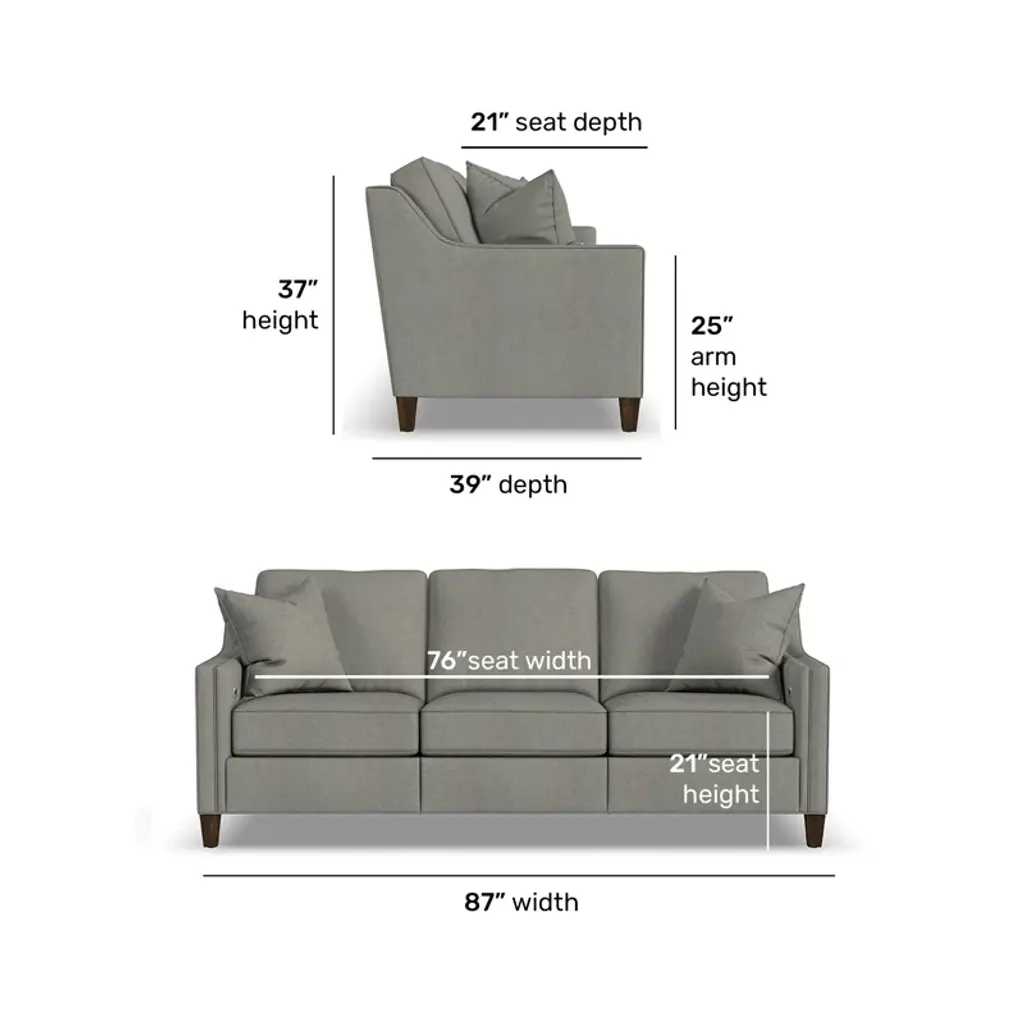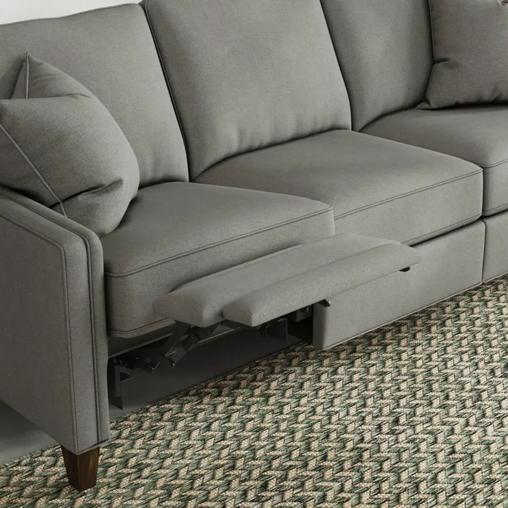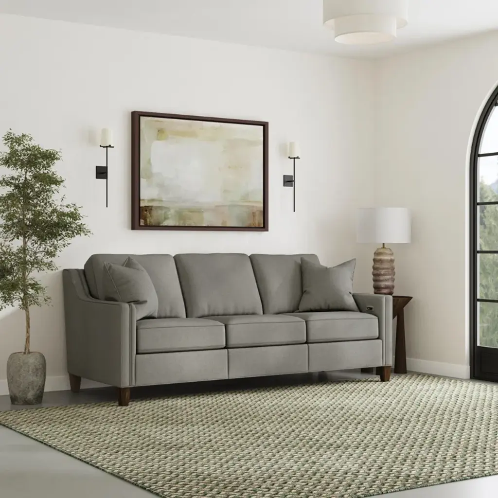 Simplicity and elegance meet ultimate comfort with the Caterina power inclining sofa. With a distinctive profile featuring sloped, tapered track arms and attractive welt detailing, Caterina has the look of a classic stationary sofa but offers the enhanced functionality of power incline for ease of relaxation. A hidden footrest extends for leg support, while our patented Blue Steel Spring technology creates a firm but flexible texture for support and comfort. With generous relaxation space, this frame sits on sleek, walnut, square-tapered legs and is expertly tailored in a comfortable polyester performance fabric.