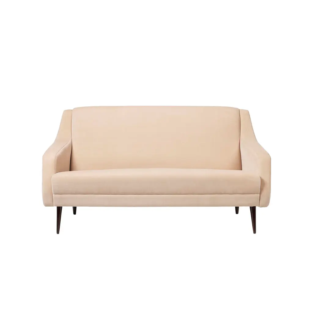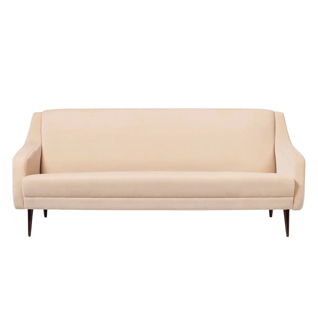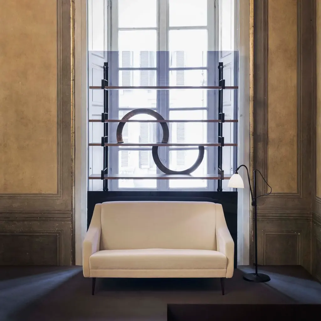 From a master of Italian postwar design, Carlo De Carli’s 1954 sofa hews to the minimalist style of the era interpreted with his uniquely graceful exuberance. CDC.2 alights on slender turned-wood legs, its arms swooping like wings for a welcoming and comfortable character. An early disciple of legendary architect and designer Gio Ponti, young Carlo’s fluency was more than evident when he set out on his own and made his mark with dynamic and timeless pieces like the CDC series.