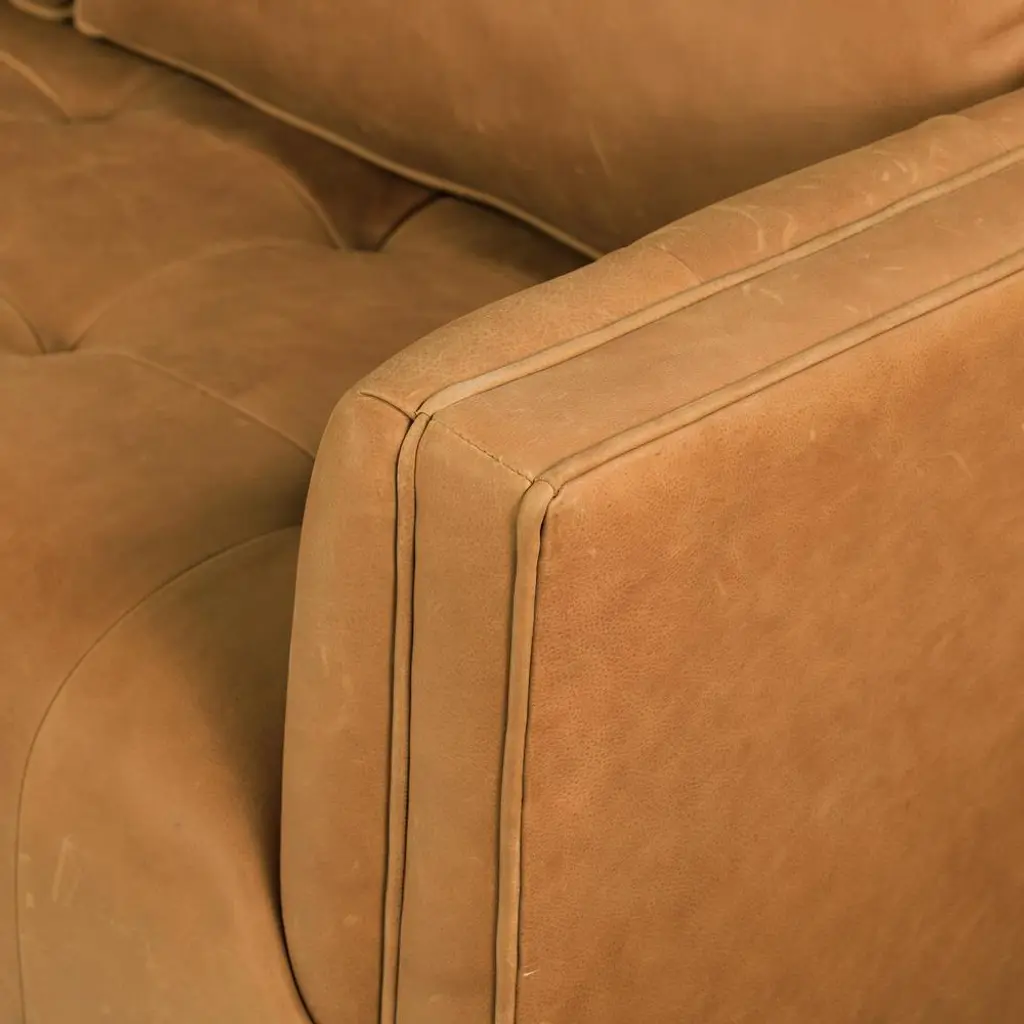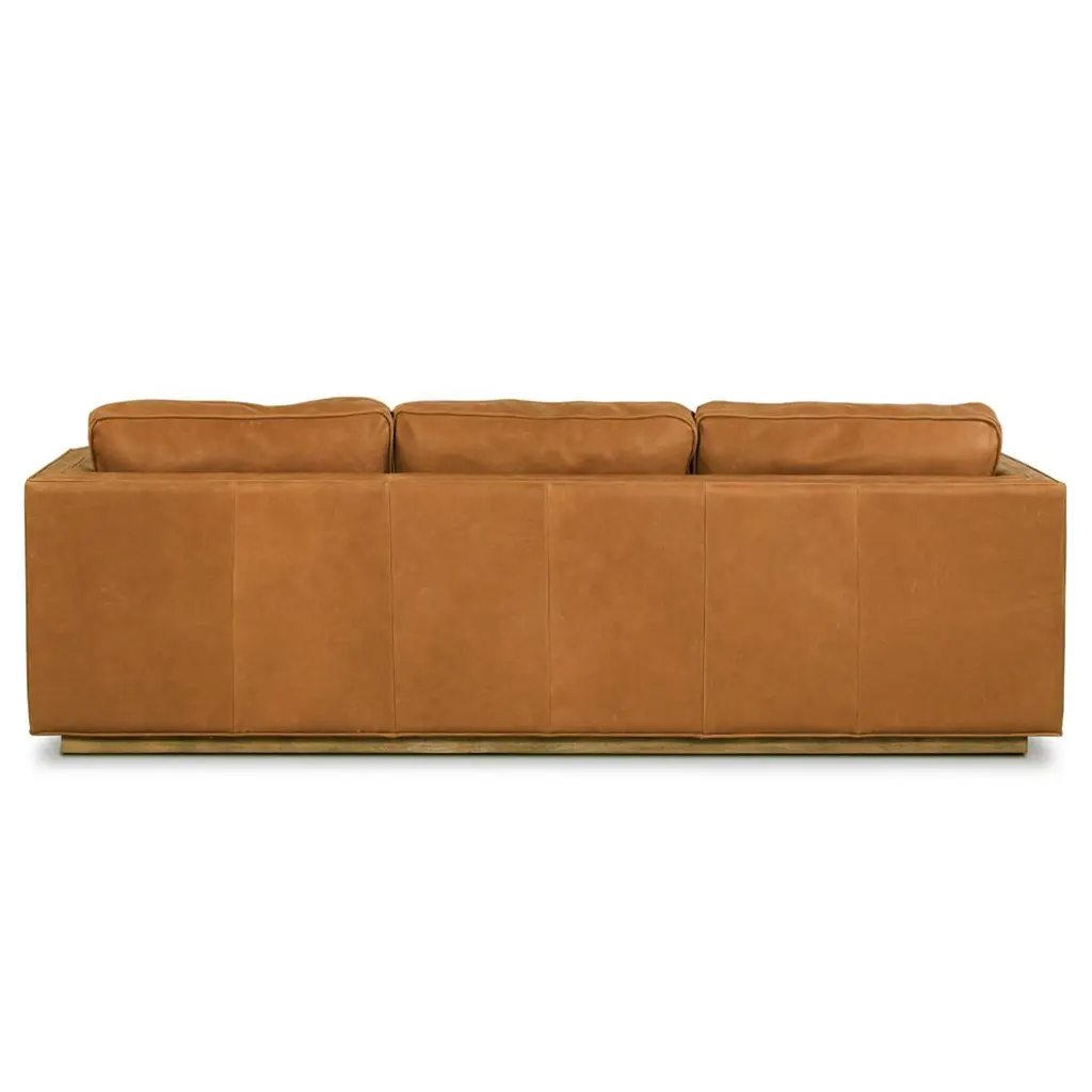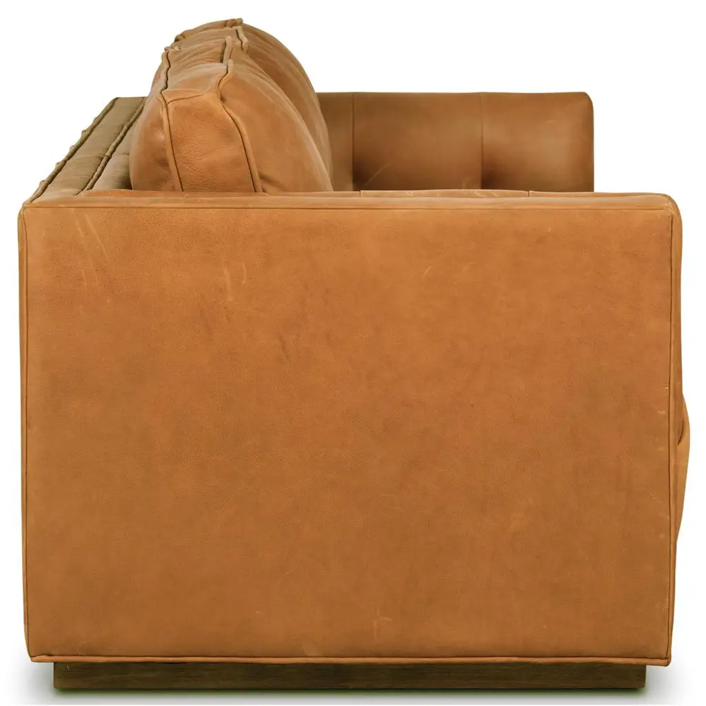 Celeste Rustic Lodge Palermo Cognac Leather Wood Base Tufted Seat Sofa - 90"w