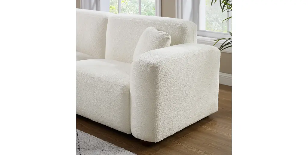 Centaurnoah 83.5" Wide 3 Seater Sofa, Boucle/linen Upholstery, Off-White Boucle