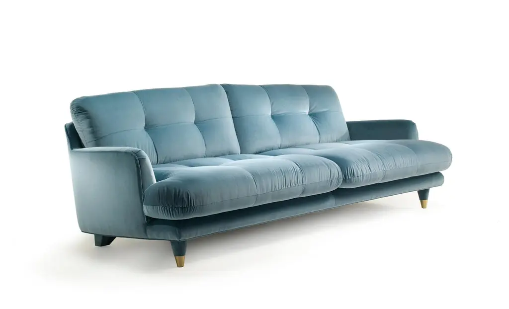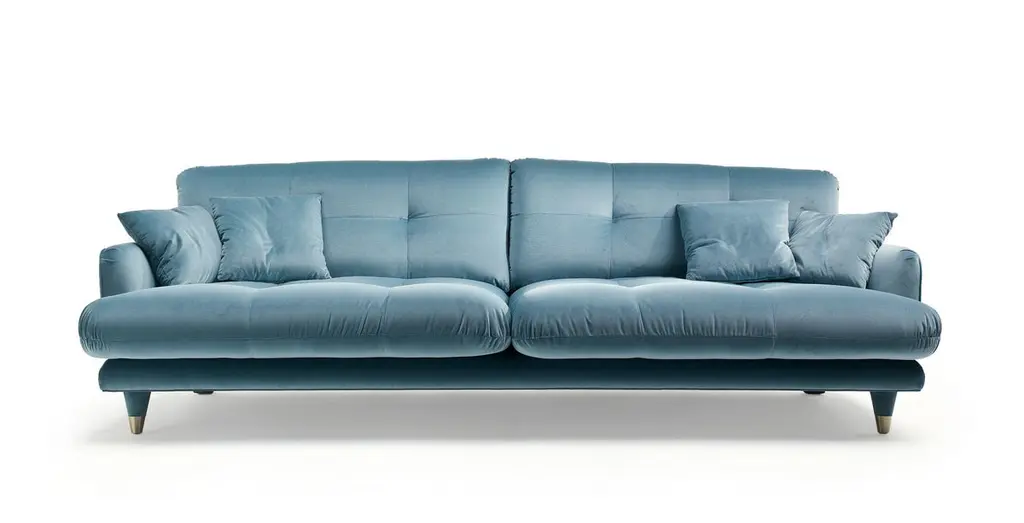 Step into the timeless elegance of the Century collection, a masterpiece by Dainelli Studio that seamlessly blends English '50s aesthetics with a modern decorative flair. Our curated selection includes the magnificent Century sofa—an object of impeccable proportions and refined design.Wrapped in luxurious leather or fabric, the Century sofa boasts two large seat cushions and two back cushions adorned with matelassé stitching, adding a touch of sophistication to its allure. The structure of this piece is a testament to craftsmanship, with the cushions elegantly supported and held together by the sofa's body.The charm of the Century sofa extends to its four tapered feet, a visual feast for the eyes. The two rear feet are delicately covered in fabric, while the front feet stand adorned with satin brass toecaps, creating a harmonious balance of materials and finishes.Explore our hand-made Italian products and bring home the Century sofa—a blend of comfort and style, a statement piece that captures the essence of timeless design. Elevate your living space with the sophistication and artistry that defines Italian craftsmanship.This item has been individually handmade by our master craftsmen. Any irregularities or natural blemishes should not be misconstrued as flaws but as integral elements that make each handmade piece unique.