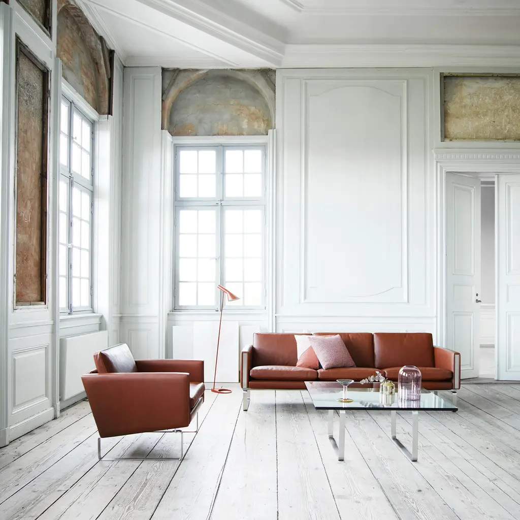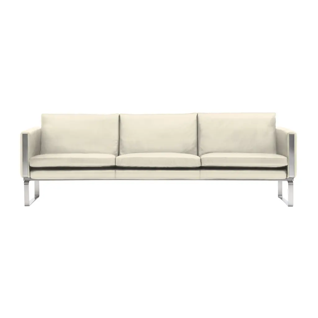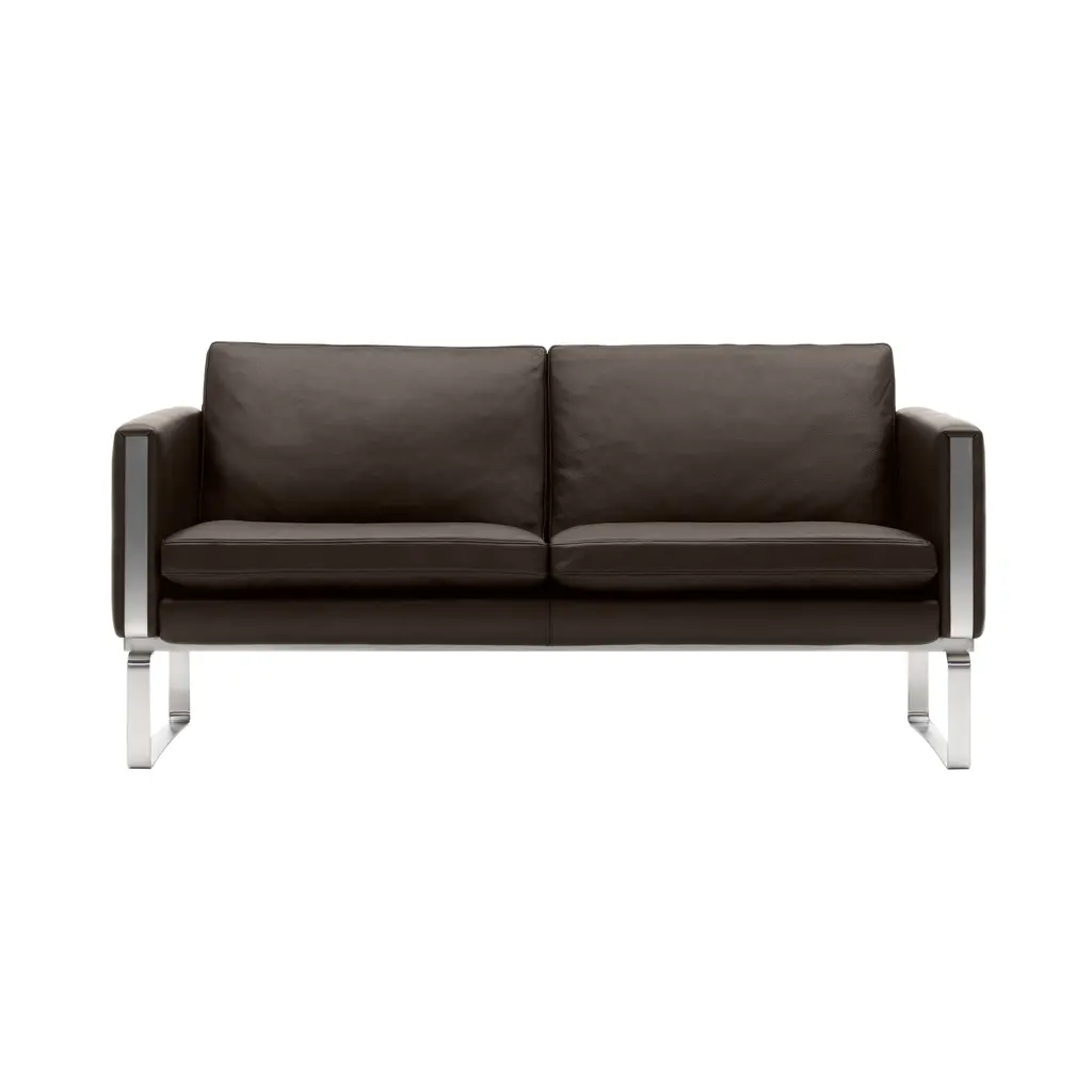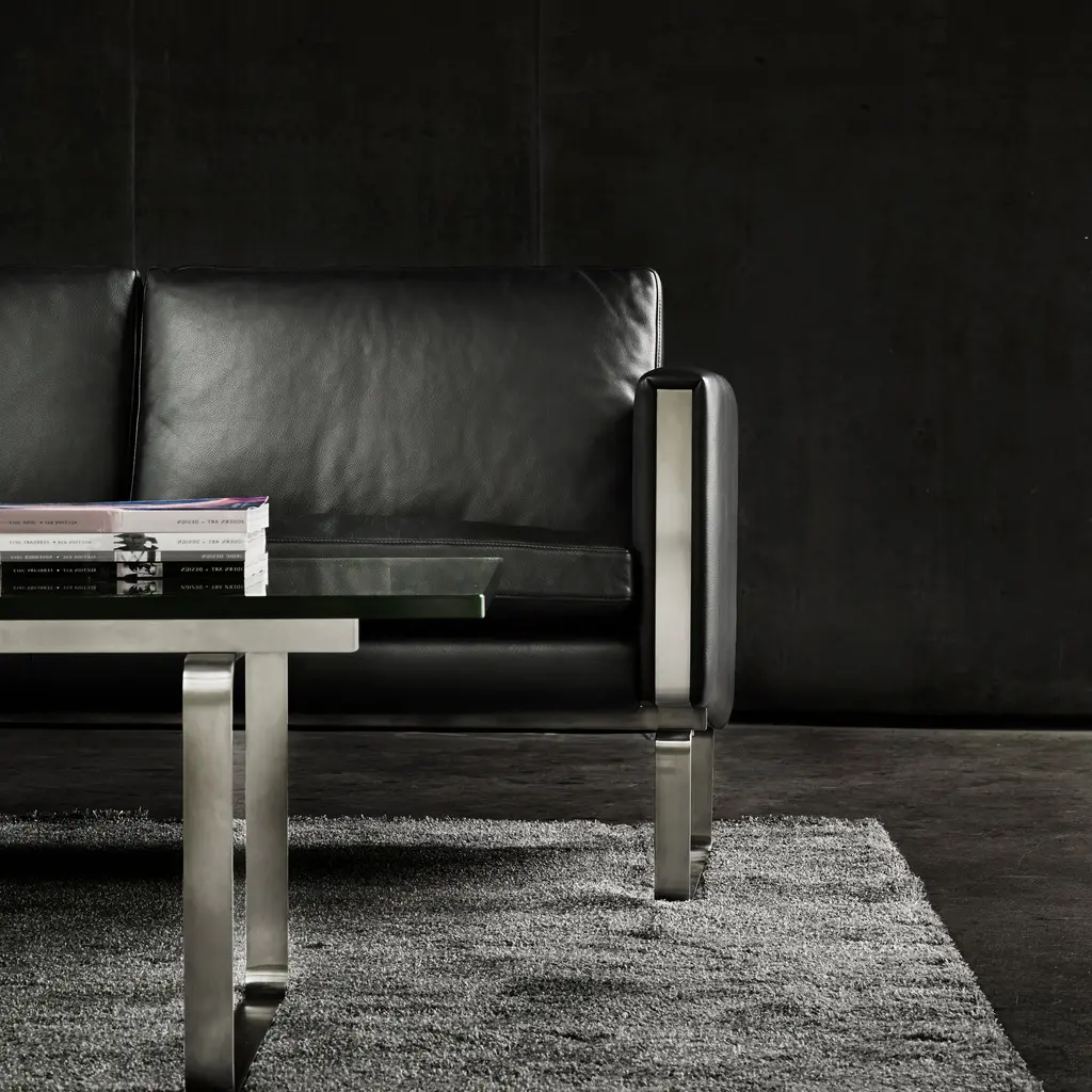 Modern luxury doesn't get any better than Hans J. Wegner's series of sublime leather-clad sofas with gleaming stainless steel appointments. Available in 2, 3 and 4-seater models, the seating is faultlessly handmade over a beechwood frame and features fully upholstered turnable cushions fashioned from a foam core surrounded by European down and cold foam. Ever timeless, Wegner's design from 1970 was reintroduced in 2008 for the 100th anniversary of the founding of Carl Hansen & Søn..