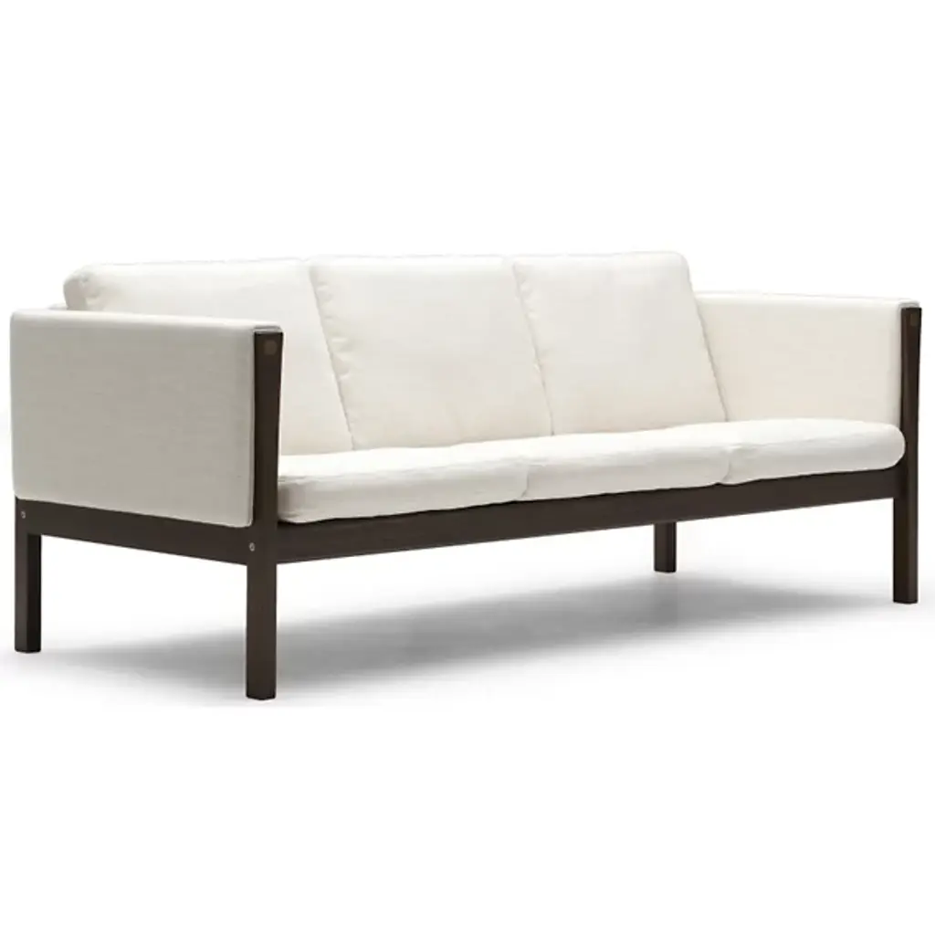 Structural details highlighted to great effect. The CH163 Sofa from Carl Hansen is a beautiful and minimalist couch that works well in modern living rooms and offices alike. The cushions are filled with down and upholstered in leather, which makes it extremely comfortable. The frame is made from high-quality wood and features an upright design that helps you sit straighter, though this doesn’t mean you’re any less relaxed. Because of its simple design, this modern sofa can complement a range of established styles.