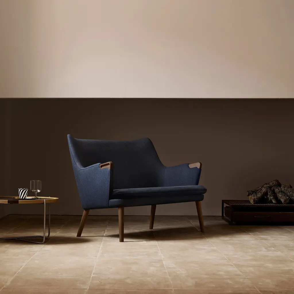 Hans J. Wegner designed the CH72 sofa in 1952, the Danish countrymen drawing on his expertise in cabinetmaking and upholstery. The result is a finely crafted, fluid design that appears as striking today as it did over half a century ago. Characterized by its sculptural lines and elegant tapered legs in a choice of oak or walnut finishes, the compact footprint and slim profile makes this seating ideal for smaller spaces and freestanding placement, beautiful from every angle.