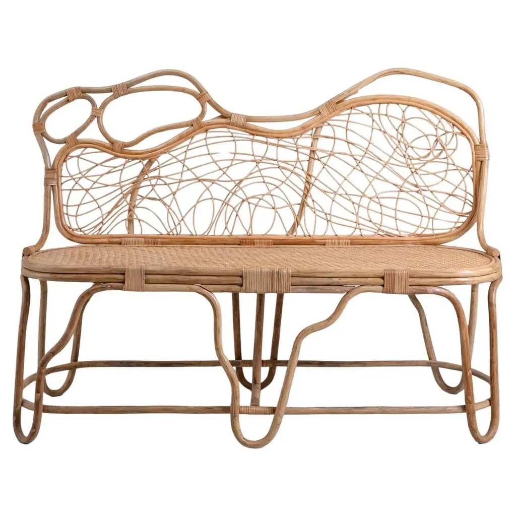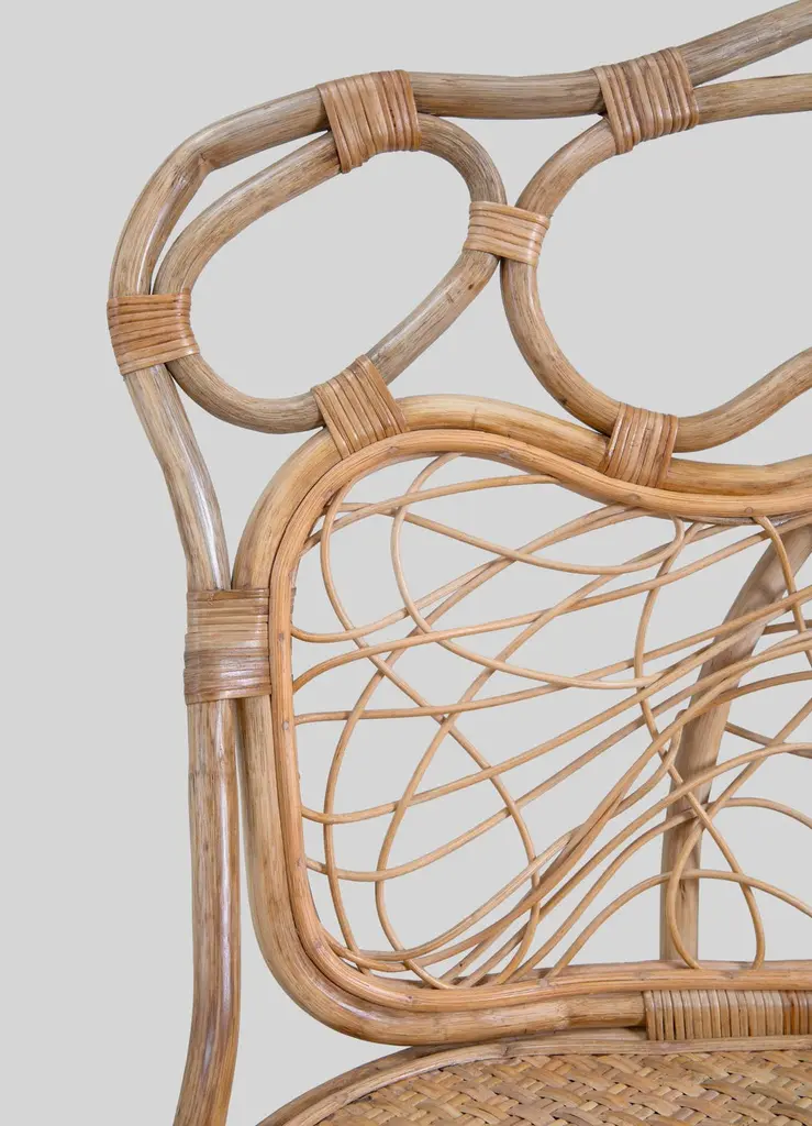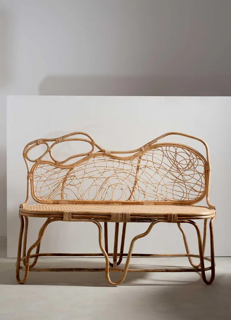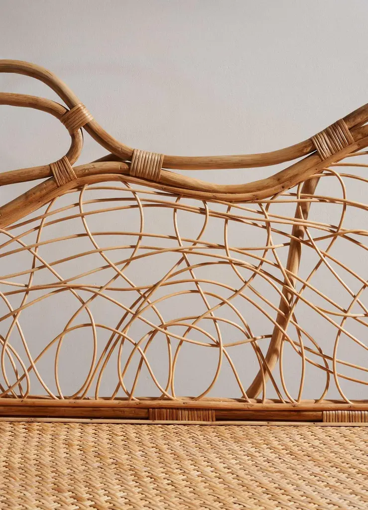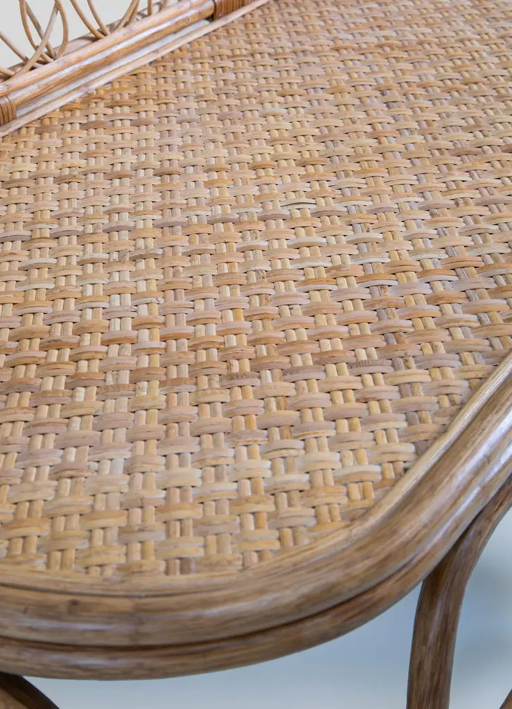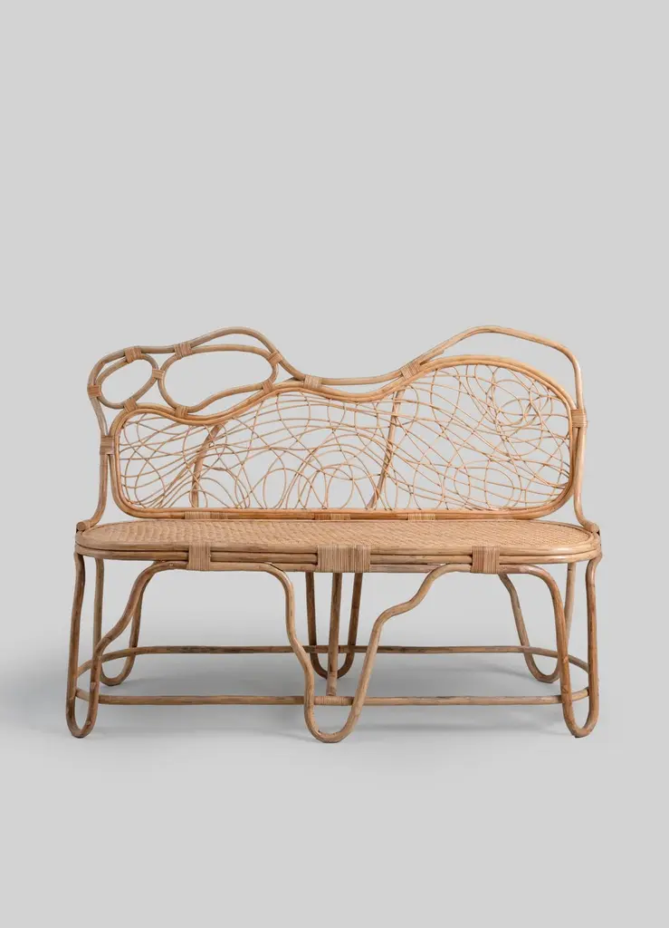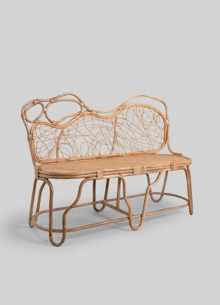 Chakra Sofa Small in Cane, Viya by Vikram GoyalPerhaps nothing is more captivating than nature's enduring metamorphosis, persisting in graceful transformation even beyond the boundaries of life. In this enchanting ritual - one with an intimate relationship with India and its cottage industries - cane is delicately peeled from the bark of the rattan plant, bathed in water, and skillfully woven and knotted into ethereal creations. The result is feather-light, resilient and references the chakra, circular energy points which unlock a harmonious unity of mind, body, and spirit.Sofa in cane. Handmade in India.Product DetailsMaterial: CaneSize: 50"L x 20"W x 37"H 127 L x 50.8 W x 94 H cmSeat Height: 18" H 45.7 H cmWeight: 10 kg 22 lbsNumber of Pieces: 1 SofaSKU: VSO151This product has been handcrafted by local artisans. As such, slight variations are a testament to the unique character of a piece made by hand.Country of Origin: India