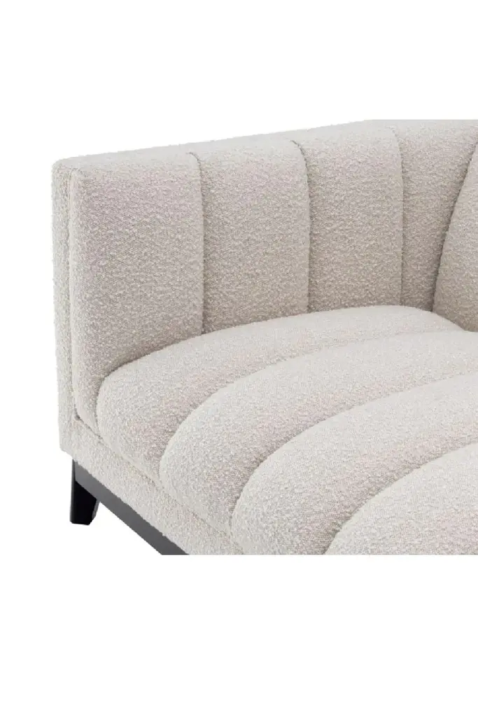 Resting upon a black finish base and upholstered in luxuriously soft fabric, Channel Stitched Modern Sofa Ditmar by Eichholtz will bring lots of charm and warmth to your living room. The deep channel stitching of the seat and backrest gives this contemporary sofa a touch of nostalgia.Bouclé cream - Mademoiselle beige