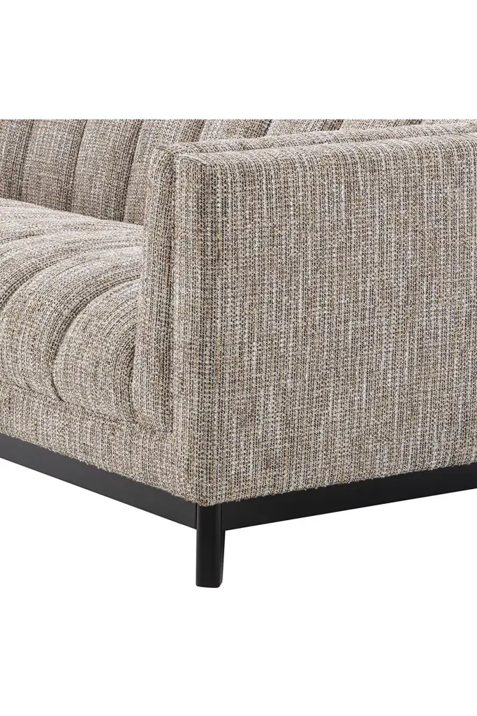 Resting upon a black finish base and upholstered in luxuriously soft fabric, Channel Stitched Modern Sofa Ditmar by Eichholtz will bring lots of charm and warmth to your living room. The deep channel stitching of the seat and backrest gives this contemporary sofa a touch of nostalgia.Bouclé cream - Mademoiselle beige