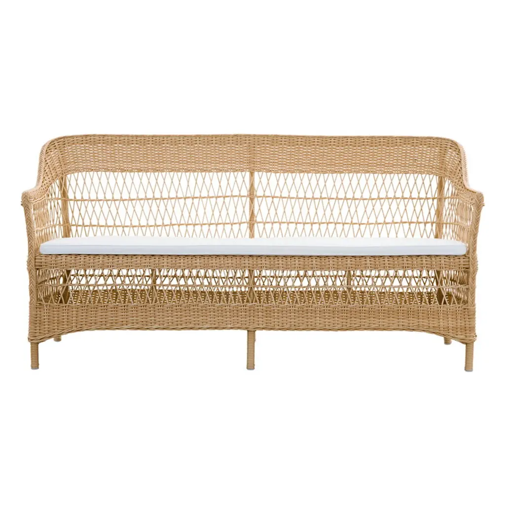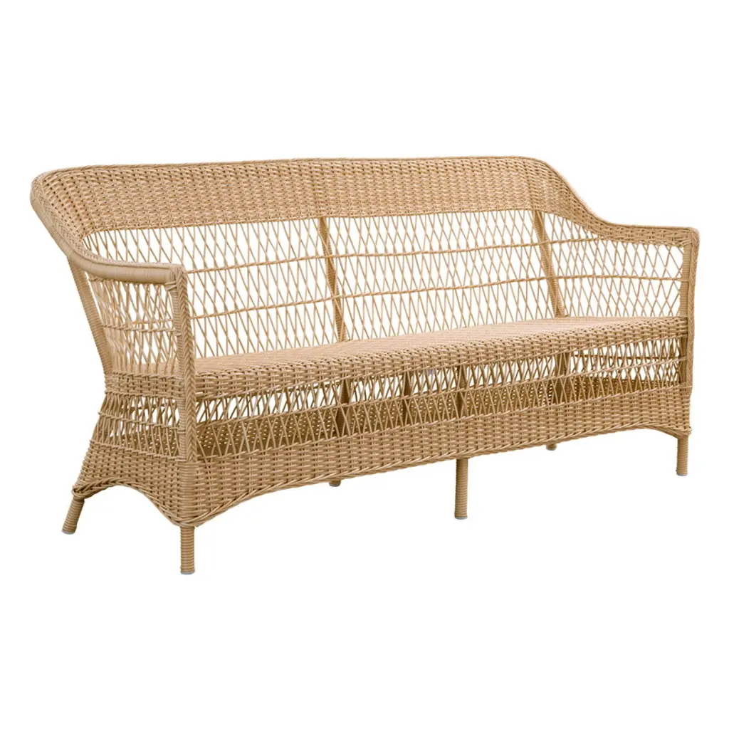 Sika-Design's Charlot sofa is an outdoor 3-seater sofa boasting a high backrest with a simple, airy weave made from synthetic rattan. The seat cushions are designed for outdoor use and feature removable, machine-washable covers. The Charlot sofa is part of Sika-Design’s Georgia Garden collection, which has been inspired by the esthetics of the British colonial style and classic Danish wicker furniture. The Alu-Rattan aluminum and synthetic ArtFibre weave give the furniture a rattan-like look and make them maintenance-free and suited for any weather conditions. Thanks to the durable materials and timeless look, the Georgia Garden collection serves equally well in private gardens as well as in public outdoor spaces.