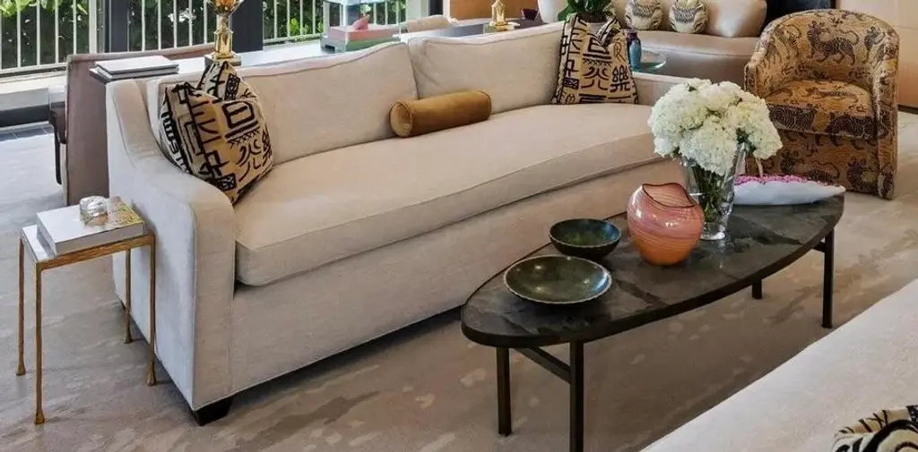 Circa 2015 Stark Carpet Co., Custom-Made Sofa With Sloped Arms With Kravet Chenille Upholstery