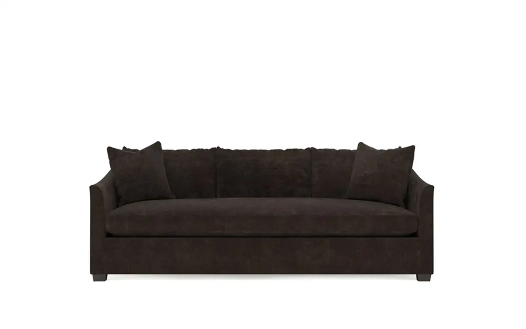 At once timeless and understated, the 89” Clairmont bench cushion sofa lends a charming touch to any modern or traditional space. Set atop tapered wood legs, the inviting silhouette includes softly sloped arms, gently curved back corners, and cozy throw pillows. Soft yet supportive with a slightly firm sit, the low-maintenance seat cushions feature a foam core surrounded by plush fiber fill. Choose from a variety of upholstery options, including linen, velvet, and performance fabrics.